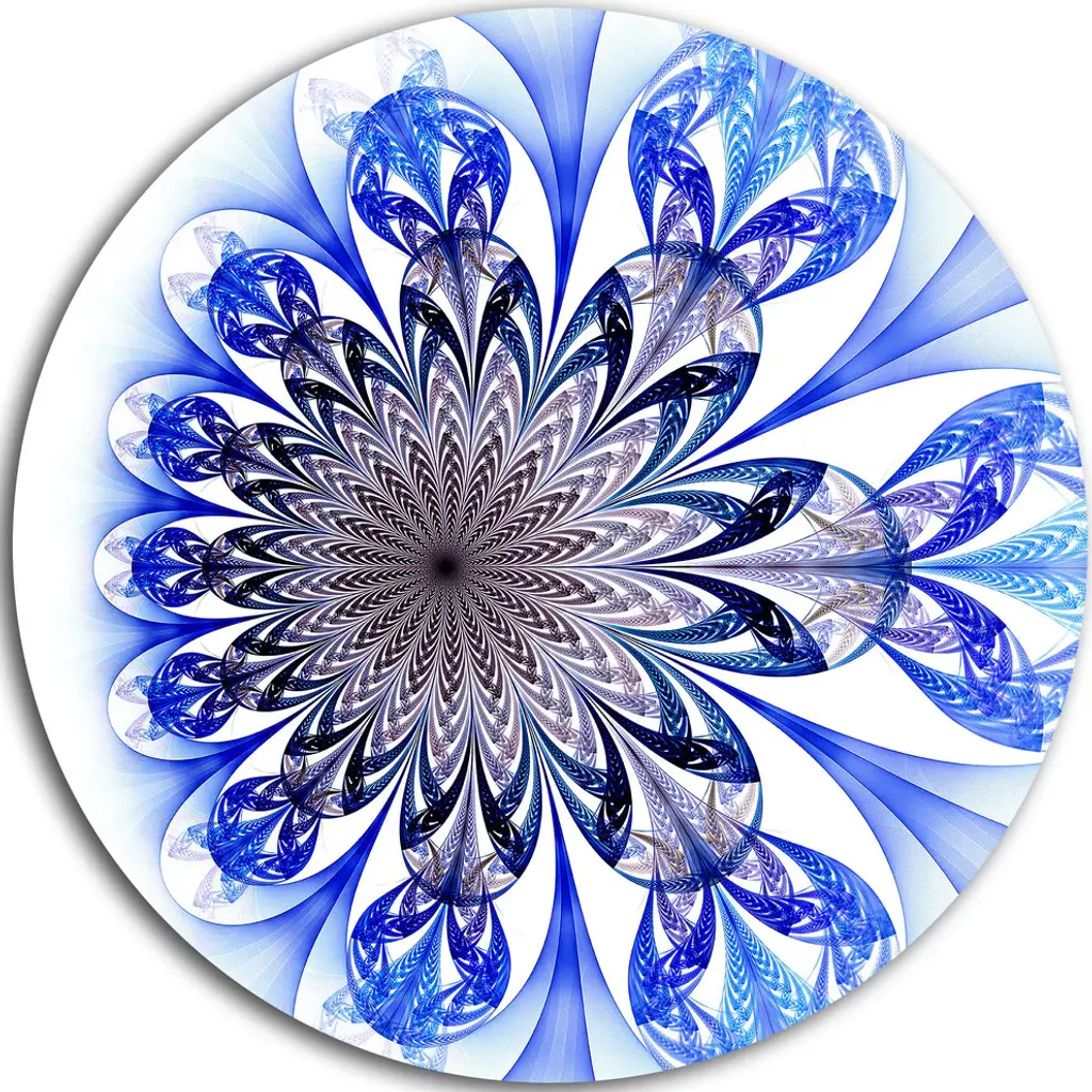 Bring Contemporary Abstraction to your home with this large Circle Metal wall art. This Symmetrical Tight Blue Fractal Flower Metal Artwork makes it the focal point of any room or office. - White Gloss Coating ensures colors are extra vibrant with light reflection.- Aluminum grade Sheet Metal with 1 inch mounting frame on the back giving the illusion that the artwork is floating on the wall..- Mounting Brackets are included along with instructions.- High Quality Digital images are created directly into a glossy aluminum panel producing a stunning and captivating print into the glossy finish of the metal.- Water, Fire and Scratch resistant HD Aluminum panels.- Looks better than any photo paper and guaranteed to last at least 20 years- Easy to clean with a microfiber cloth. Colors are far superior to regular Canvas Art. - Easy to Hang