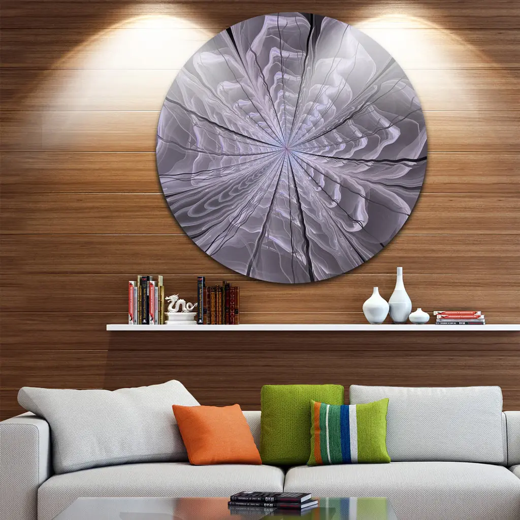 Bring Contemporary Abstraction to your home with this large Circle Metal wall art. This Symmetrical Violet Digital Fractal Flower Metal Artwork makes it the focal point of any room or office. - White Gloss Coating ensures colors are extra vibrant with light reflection.- Aluminum grade Sheet Metal with 1 inch mounting frame on the back giving the illusion that the artwork is floating on the wall..- Mounting Brackets are included along with instructions.- High Quality Digital images are created directly into a glossy aluminum panel producing a stunning and captivating print into the glossy finish of the metal.- Water, Fire and Scratch resistant HD Aluminum panels.- Looks better than any photo paper and guaranteed to last at least 20 years- Easy to clean with a microfiber cloth. Colors are far superior to regular Canvas Art. - Easy to Hang