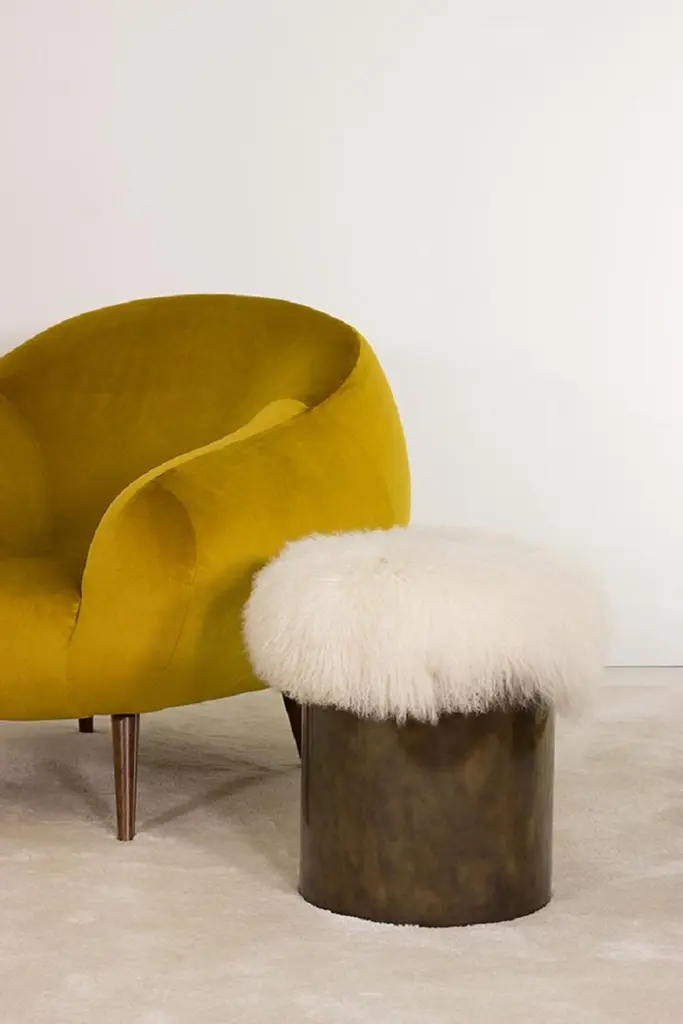 Symphony Stool by InsidherLandDimensions: D 41 x W 41 x H 50 cm.Materials: Rustic oxidized brushed brass, Mongolian Lamb fur Ref. White.10 kg.Recognized as one of the most exceptional composers of all time, Ludwig Van Beethoven was born in 1770 in Germany. As an ode to the genius behind the music, the Symphony stool captures the tumultuous essence of his famous composition, the Symphony No. 5.Beethoven’s exceptional artistic creation, with surprising transitions between the dramatic vibrations and the melodic softness, is represented by two elements of the stool. The irreverent Mongolian Lamb fur meets the musical tension felt during the 1st moment of the Symphony and contrasts with the smooth irregular movements of the base in oxidized brass that recreate the most melodic chords.Through its magnificence inspiration, the ravishing Symphony stool perfectly complements either contemporary or rustic interiors.Created by Architect Joana Santos Barbosa in 2012, InsidherLand is a Portuguese brand of exclusive design. Drawn with the signature of the creator, the impressive range of contemporary luxury furniture, lighting, upholstery and accessories are connected to her personal memories and have been highlighted for their innovative and soulful designs.Joana explores several influences from travels around the world to define her own Land as a place that allows her to translate her perceptions into objects of art.The essence of InsidherLand is presented by two inspiring collections. Beyond Memory Collection is deeply influenced by organic forms of nature, legends and traditional cultures, as for the Identity Collection is molded by forms of Architecture and Art. Both collections are designed as a dialog in which nature meets strong architectural lines to create relaxed and sophisticated interiors surrounded by natural materials and meaningful art pieces.Being positioned in strategic markets of high-end luxury decoration, InsidherLand team is proud of working with the best architects and interior design studios from all over the world who seek for handmade exclusive objects that arouse emotions and stand out in exquisite spaces.We are dedicated with love and enthusiasm into every creation to surprise a sensitive but demanding public. Using the expertise of traditional craft techniques, all creations are made by the hands of Portuguese master craftsmen and jewelers who wisely sculpt them in noble materials, finalizing every detail with elegance and perfection.