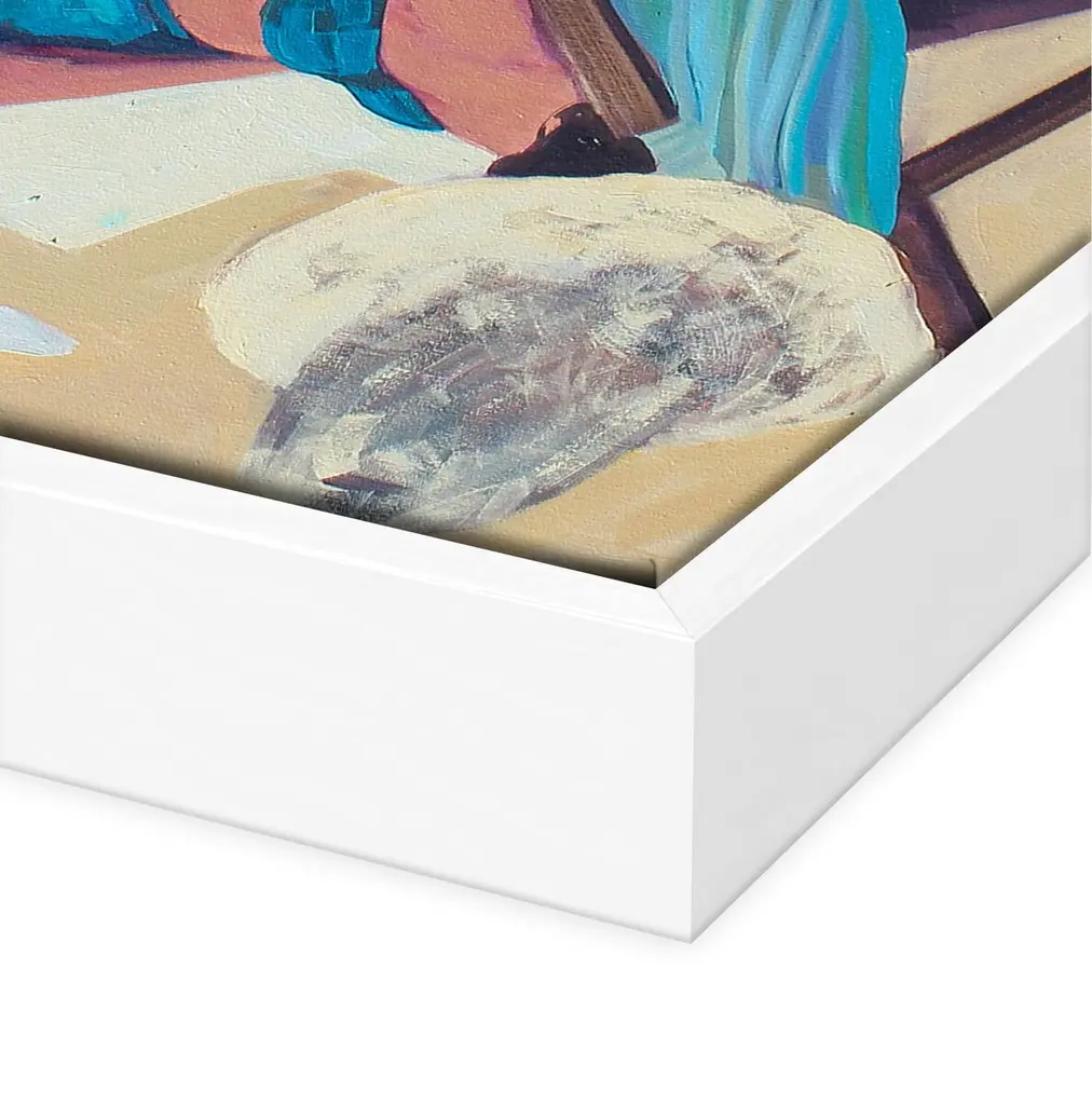 Seen first at One Kings Lane: Inspired by midcentury snapshots and film stills, this piece from T. S. Harris perfectly captures the charm and spirit of summer days at the beach. This work is printed on gallery-wrapped canvas, displayed in a white pine floater frame, and arrives ready to hang.The California artist T.S. Harris takes old black-and-white snapshots, often found at flea markets and yard sales, and lights them up with color. Her subjects are nostalgic, like her series on film stars of the 1940s and ’50s and her scenes of long leisurely summers. Harris makes each painting come to life by cropping into each scene, roughing up the paintwork, and weaving in a bright, light-filled palette.