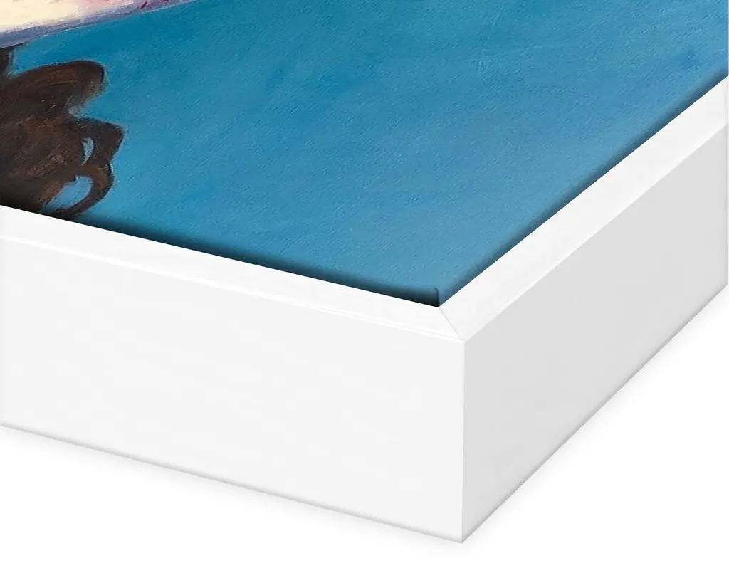 Seen first at One Kings Lane: Inspired by midcentury snapshots and film stills, this piece from T. S. Harris features a woman holding ski poles set against a clear blue backdrop. This work is printed on ultracotton canvas, displayed in a wood floater frame, and arrives ready to hang.The California artist T.S. Harris takes old black-and-white snapshots, often found at flea markets and yard sales, and lights them up with color. Her subjects are nostalgic, like her series on film stars of the 1940s and ’50s and her scenes of long leisurely summers. Harris makes each painting come to life by cropping into each scene, roughing up the paintwork, and weaving in a bright, light-filled palette.