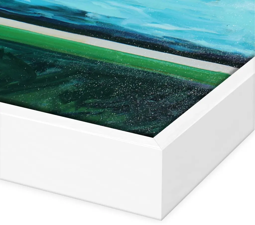 Inspired by midcentury snapshots and film stills, this piece from T. S. Harris features a woman swimming laps on a sunny summer day. This work is printed on gallery-wrapped canvas, displayed in a white pine floater frame, and arrives ready to hang.The California artist T.S. Harris takes old black-and-white snapshots, often found at flea markets and yard sales, and lights them up with color. Her subjects are nostalgic, like her series on film stars of the 1940s and ’50s and her scenes of long leisurely summers. Harris makes each painting come to life by cropping into each scene, roughing up the paintwork, and weaving in a bright, light-filled palette.