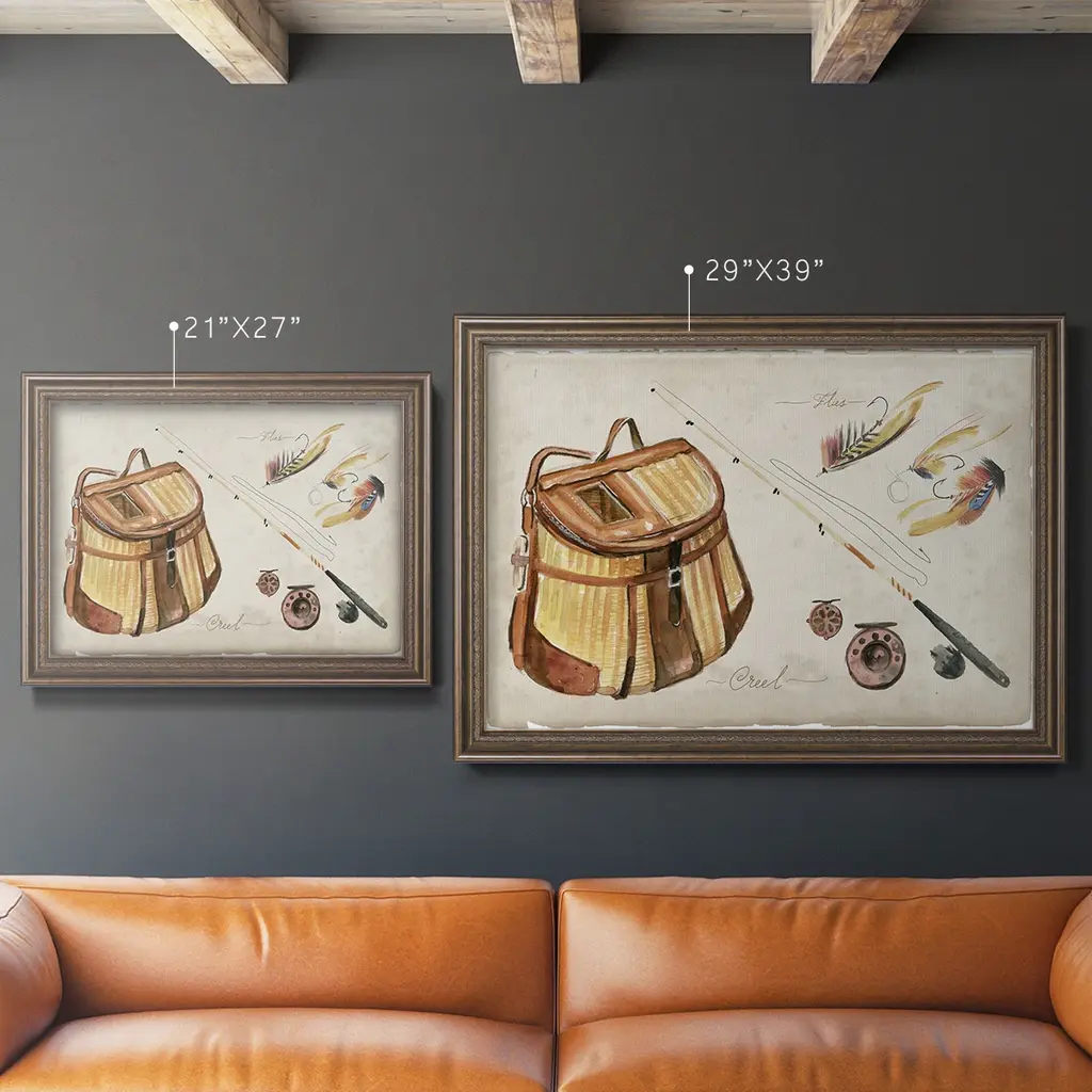 Tackle Box Collection A Premium Framed Canvas- Ready to Hang A Premium Framed Canvas created to last. Framed in distressed wood and available in an array of sizes and colors Featuring a beveled a solid wood stretcher bar, each piece comes ready to hand 3 SIZES AVAILABLE 16''X20'' - Overall Size 18'X27'' - Overall Size 24''x36'' - Overall Size Each piece is made to order. Each piece comes with hanging hardware. Made in the USA Ready to Hang Giclee Paper Print Acrylic Glass Beveled Matt Board