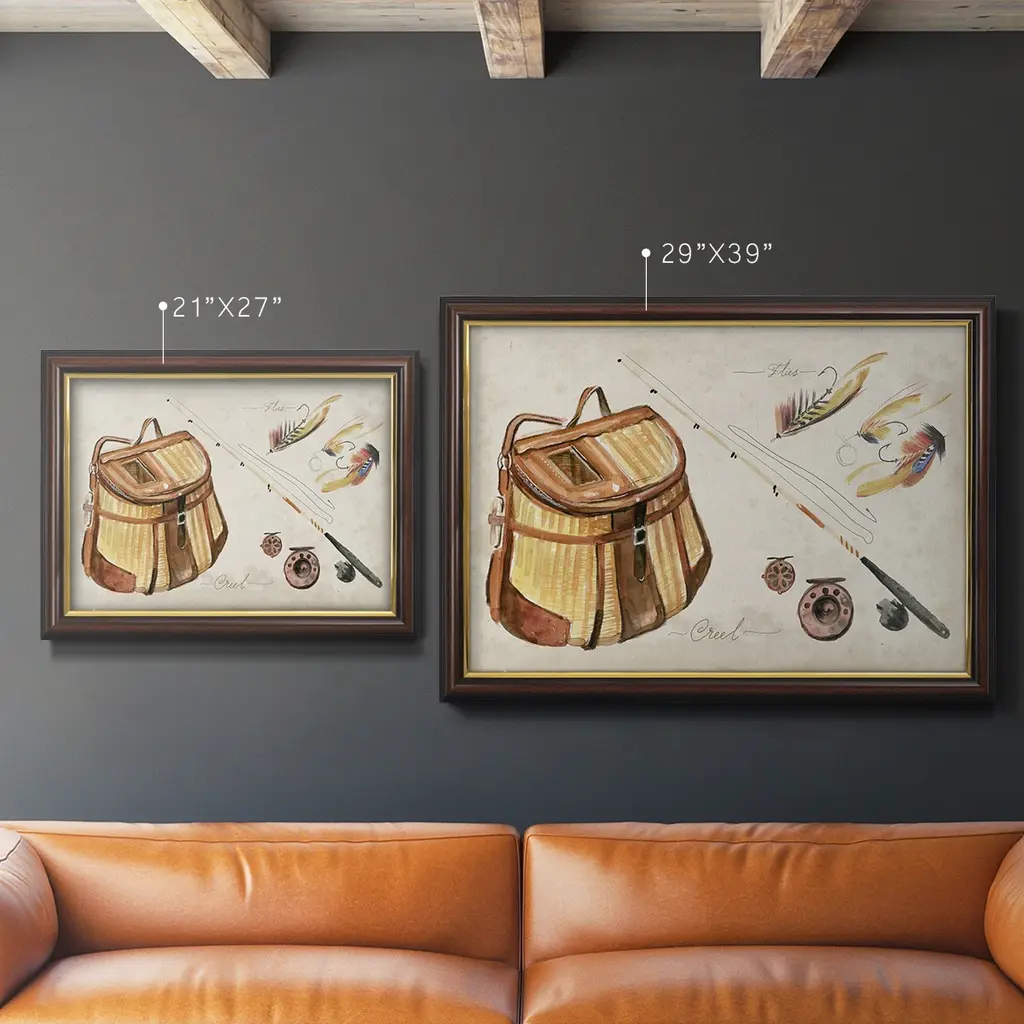 Tackle Box Collection A Premium Framed Canvas- Ready to Hang A Premium Framed Canvas created to last. Framed in distressed wood and available in an array of sizes and colors Featuring a beveled a solid wood stretcher bar, each piece comes ready to hand 3 SIZES AVAILABLE 16''X20'' - Overall Size 18'X27'' - Overall Size 24''x36'' - Overall Size Each piece is made to order. Each piece comes with hanging hardware. Made in the USA Ready to Hang Giclee Paper Print Acrylic Glass Beveled Matt Board