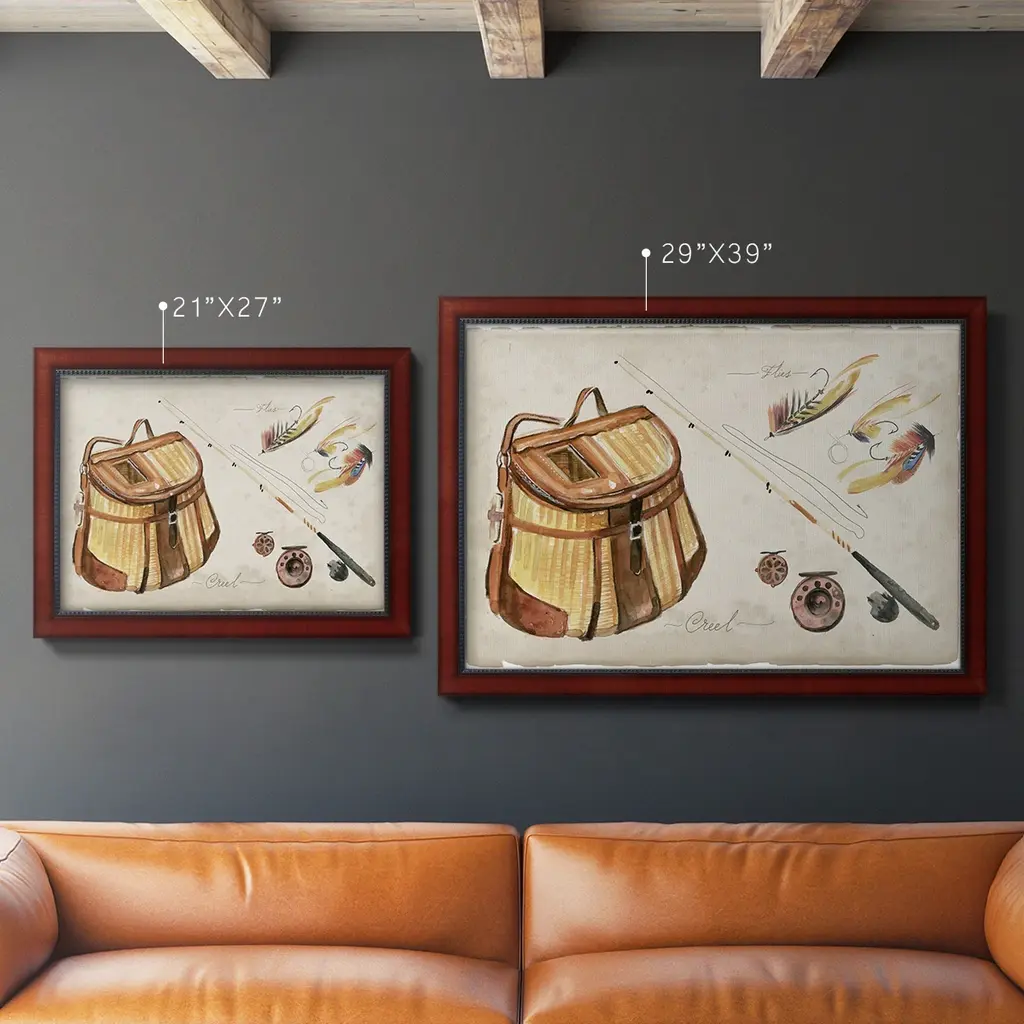 Tackle Box Collection A Premium Framed Canvas- Ready to Hang A Premium Framed Canvas created to last. Framed in distressed wood and available in an array of sizes and colors Featuring a beveled a solid wood stretcher bar, each piece comes ready to hand 3 SIZES AVAILABLE 16''X20'' - Overall Size 18'X27'' - Overall Size 24''x36'' - Overall Size Each piece is made to order. Each piece comes with hanging hardware. Made in the USA Ready to Hang Giclee Paper Print Acrylic Glass Beveled Matt Board