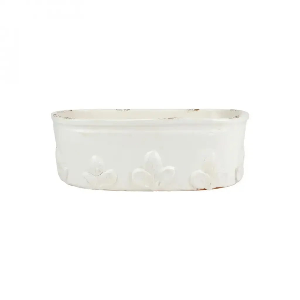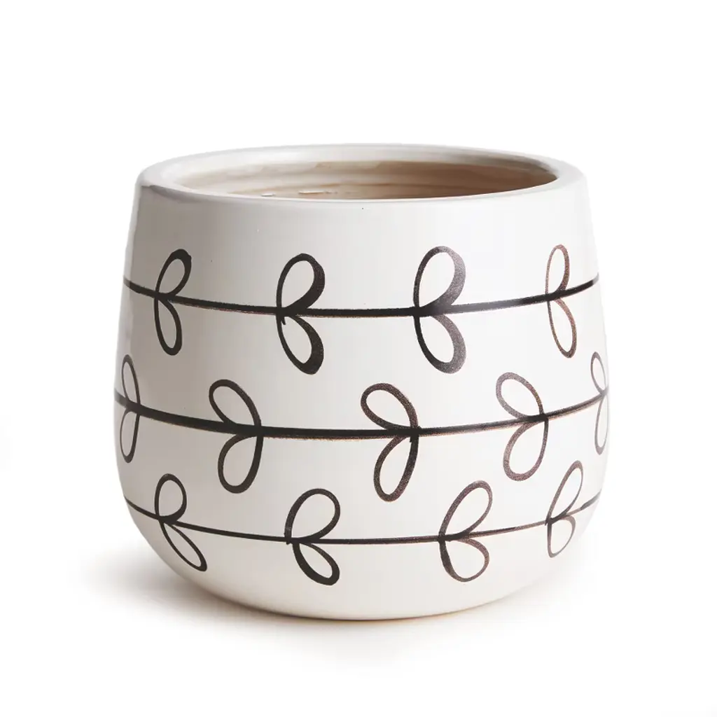 Tagltd Let It Bee Flower Print Planter Small Glazed Ivory Stoneware 4.7l X 4.7w X 3.9h Inches Holds Up To 2 Inch Drop In Pot