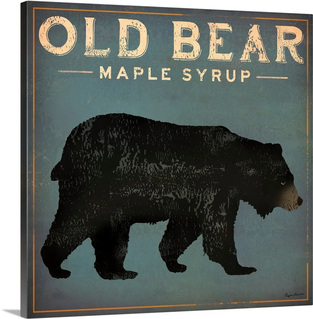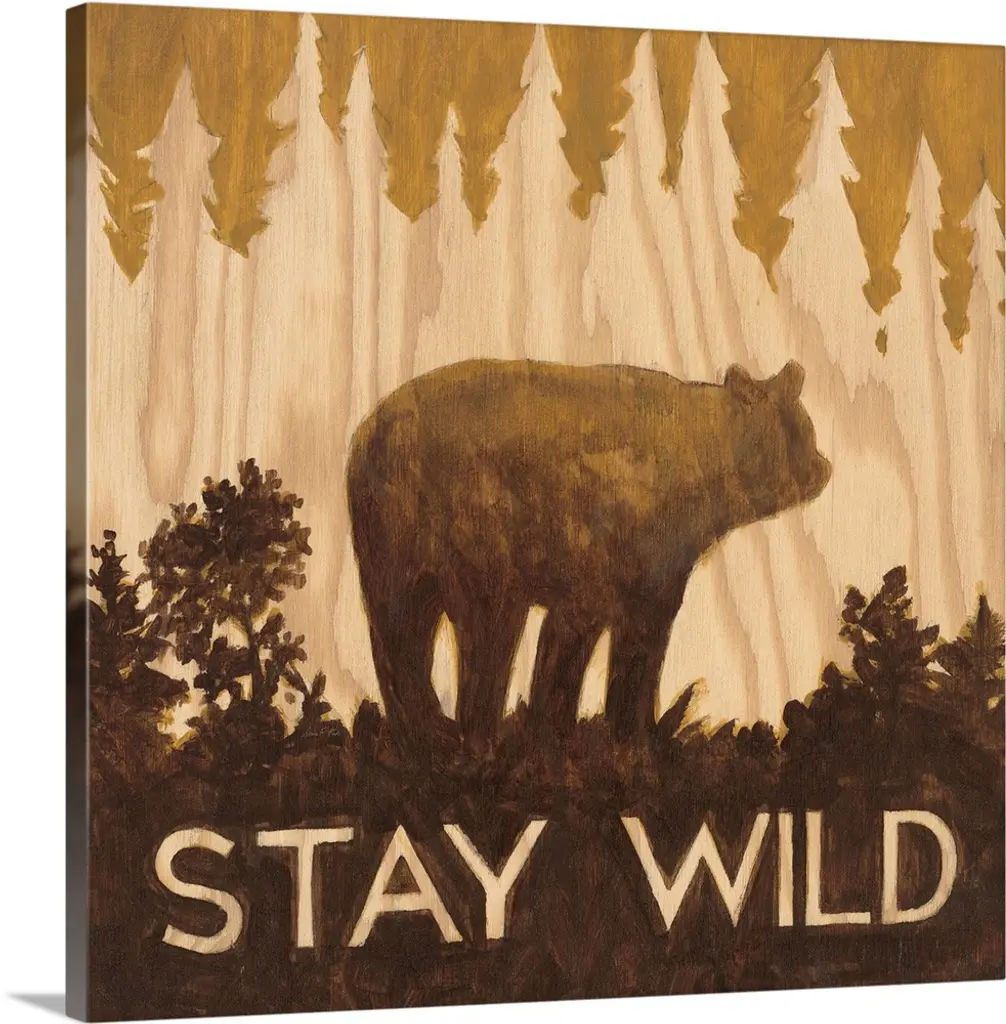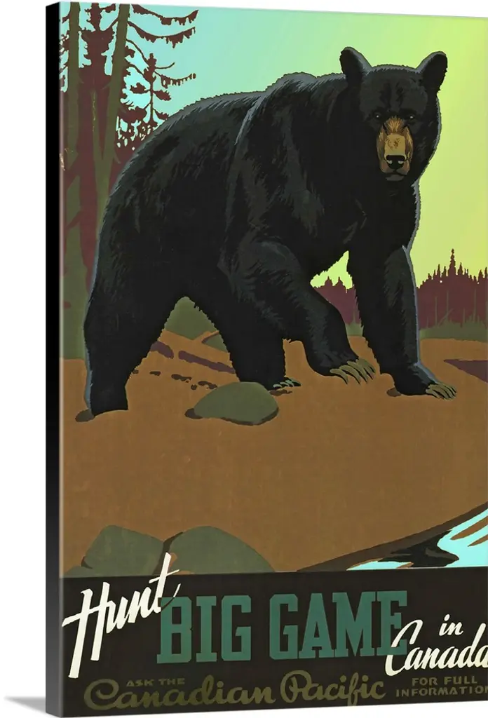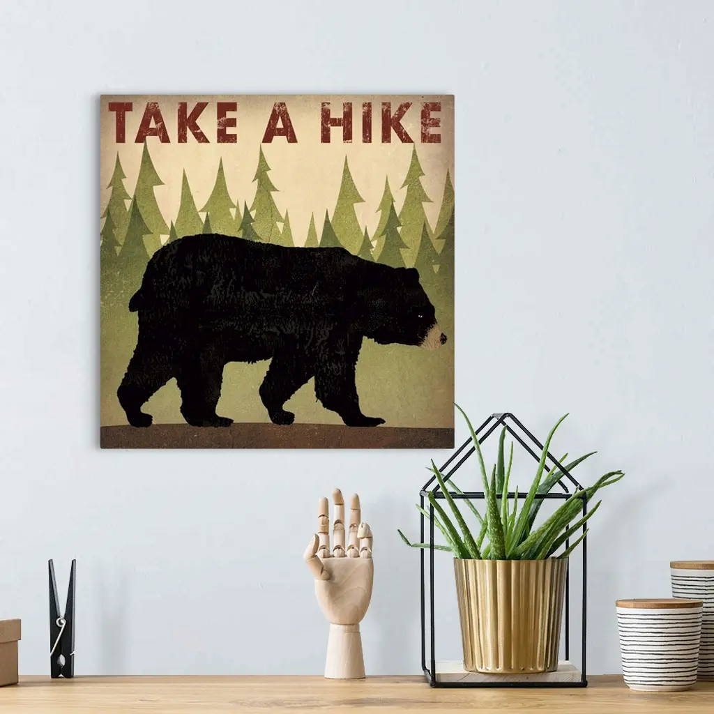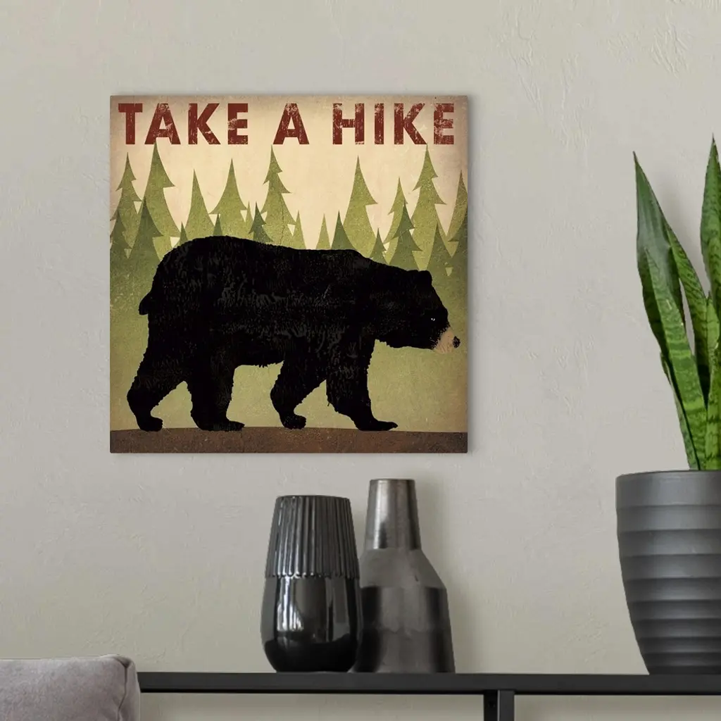 Contemporary cabin decor artwork of a black bear sign for hiking.