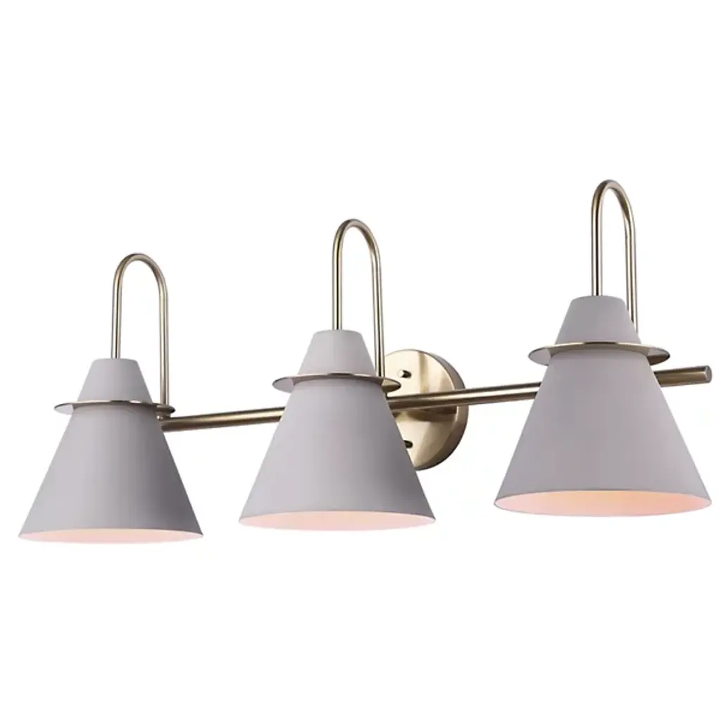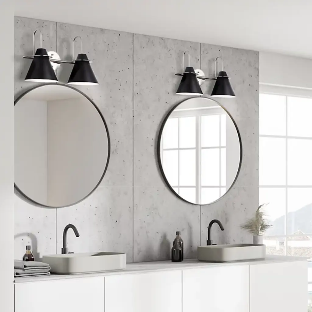 The Talia Bath Vanity Light from Canarm arranges conical shades on a horizontal bar, creating rhythm through repetition. Each shade extends from a graceful arching arm that adds movement to the linear composition. The fixture projects light outward rather than downward, eliminating harsh shadows during grooming tasks. Its mixed-metal construction introduces subtle visual tension that energizes bathroom walls. Perfect for framing mirrors or brightening vanity areas, this piece proves that bathroom lighting deserves the same design attention as more public spaces.