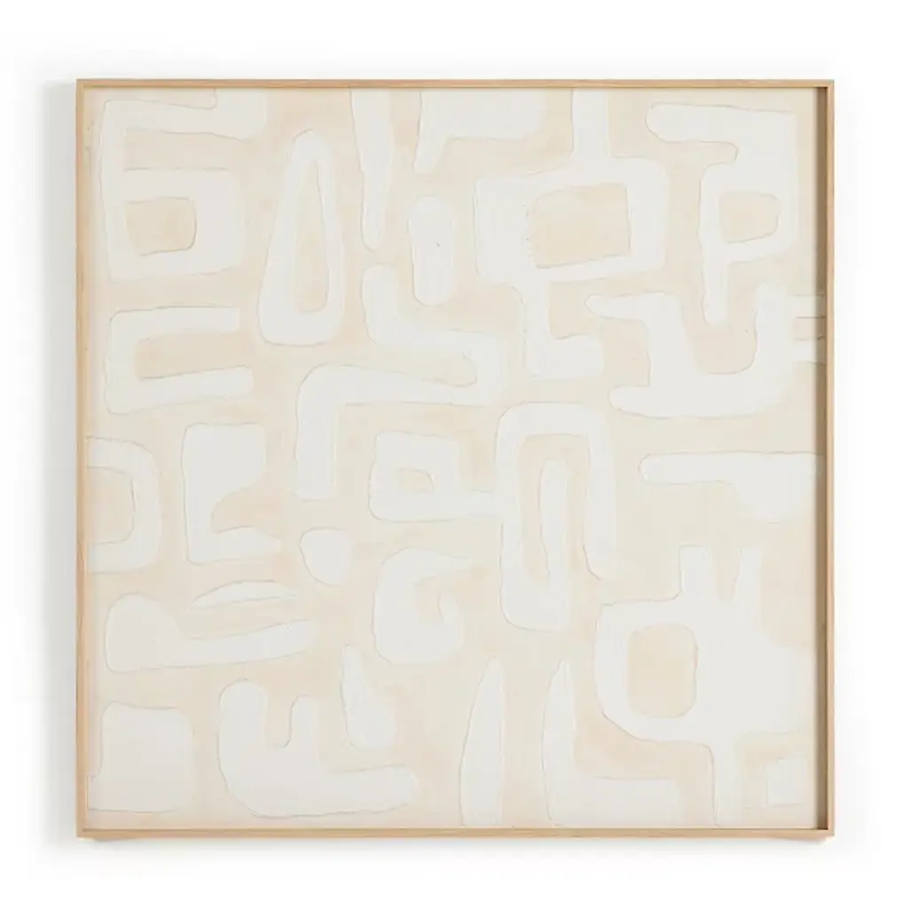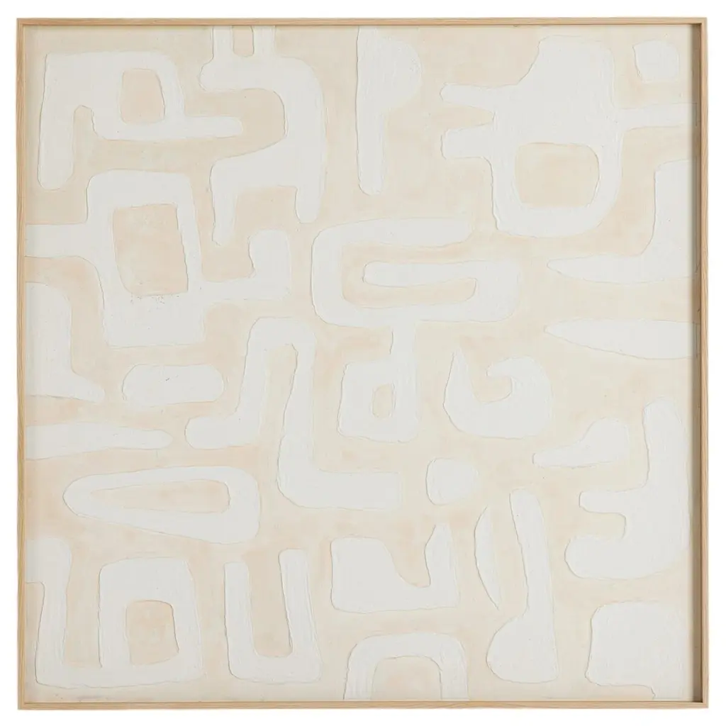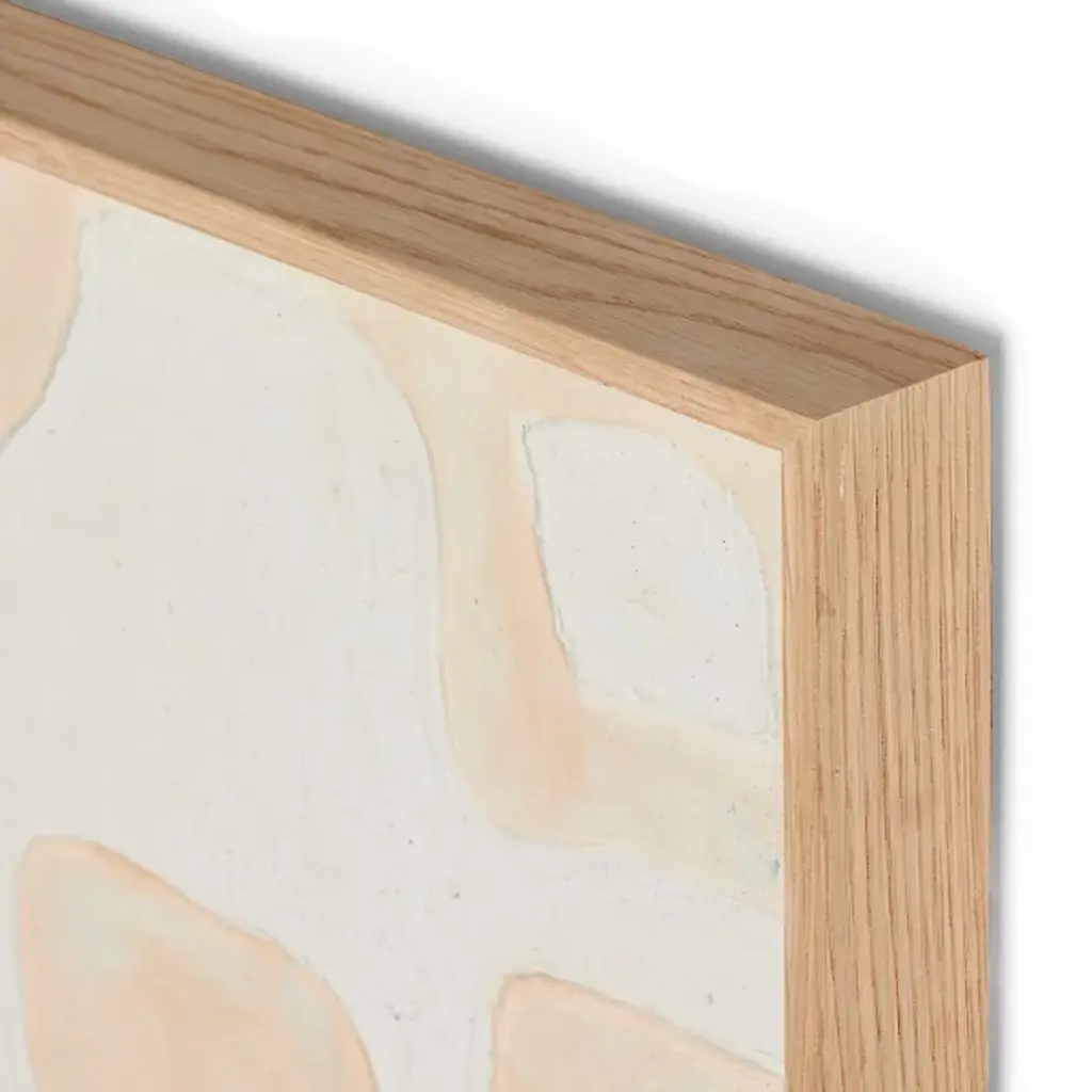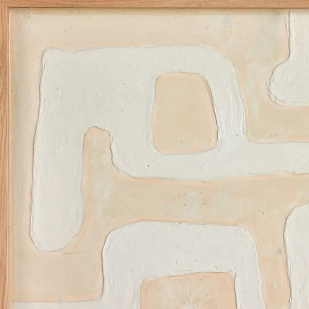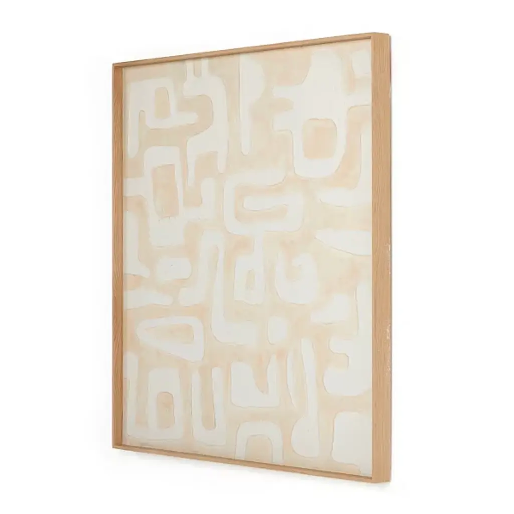 Discover the captivating blend of contemporary and rustic modern styles in the Talisman Wall Art from Four Hands, a creation by Austin-based artist Jess Engle. The design draws inspiration from nature and geometry, drawing the eye with an array of rounded shapes texture-enhanced and printed on a maple panel and set back in a vertical grain white oak frame. Each instance is handmade in Austin, Texas, combining artistic innovation and meticulous craftsmanship.