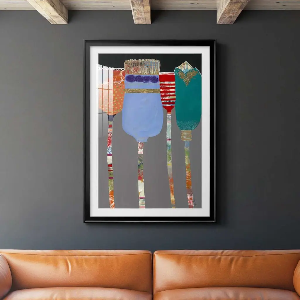 Tall Tulips Premium Framed Print - Ready to Hang A Premium Framed Print created to last. Framed in distressed wood and available in an array of sizes and colors Featuring a beveled a solid wood stretcher bar, each piece comes ready to hand 4 SIZES AVAILABLE 30.5''X42.5'' - Overall Size 26.5'X36.5'' - Overall Size 22.5''x30.5'' - Overall Size 18.5''x24.5'' - Overall Size Each piece is made to order. Each piece comes with hanging hardware. Made in the USA Ready to Hang Giclee Paper Print Acrylic Glass Beveled Matt Board
