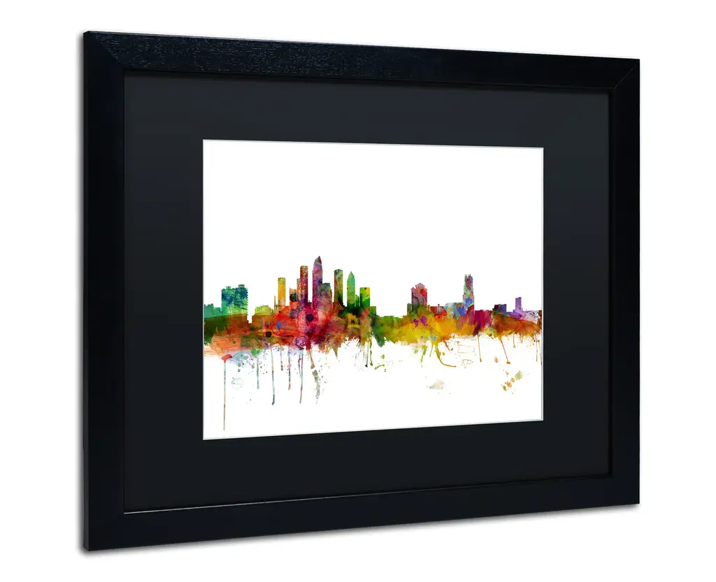 "Tampa, Florida Skyline" Matted Framed Canvas Art By Michael Tompsett
