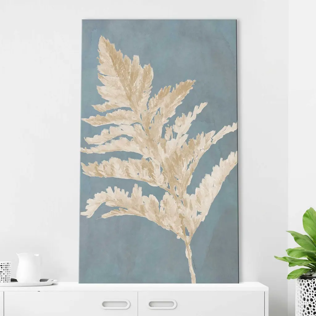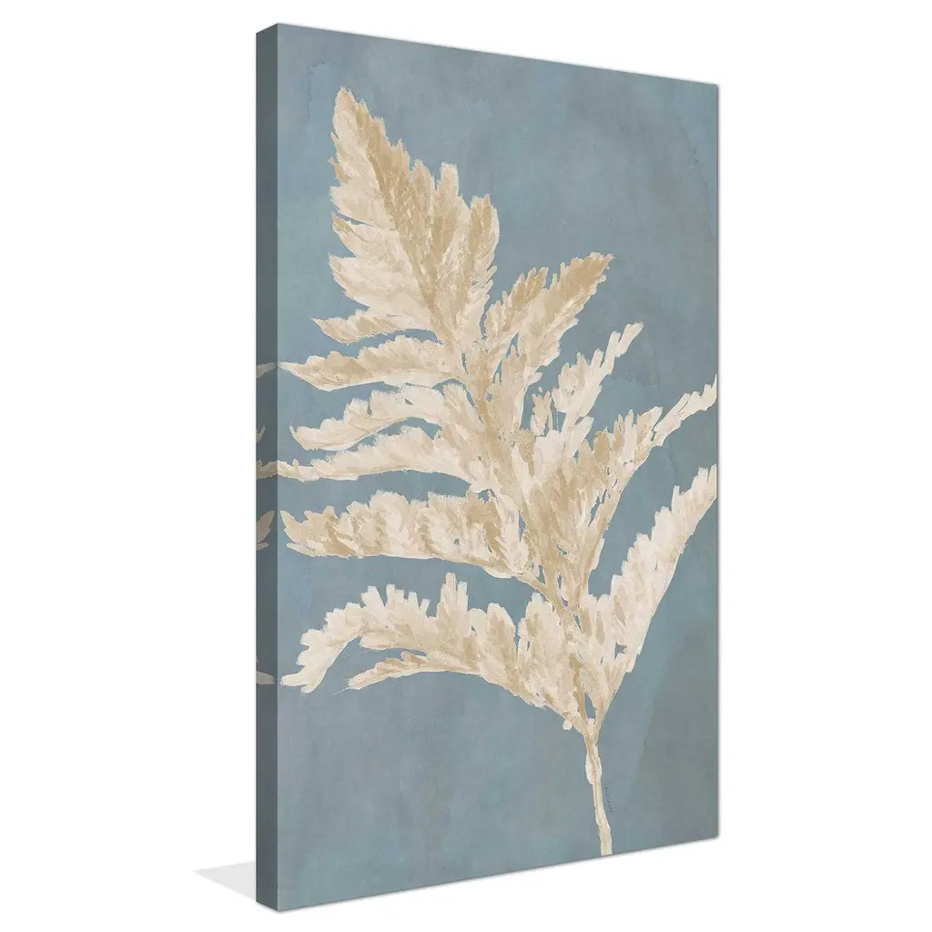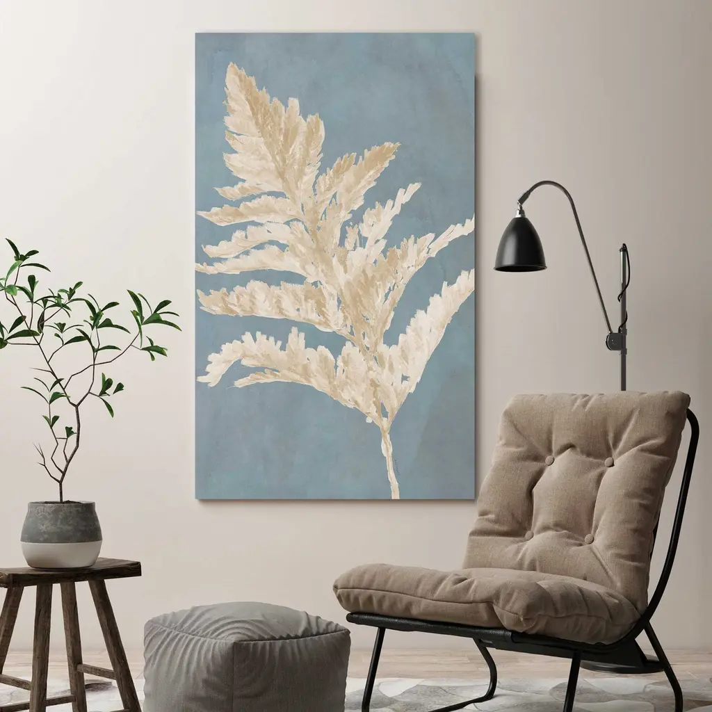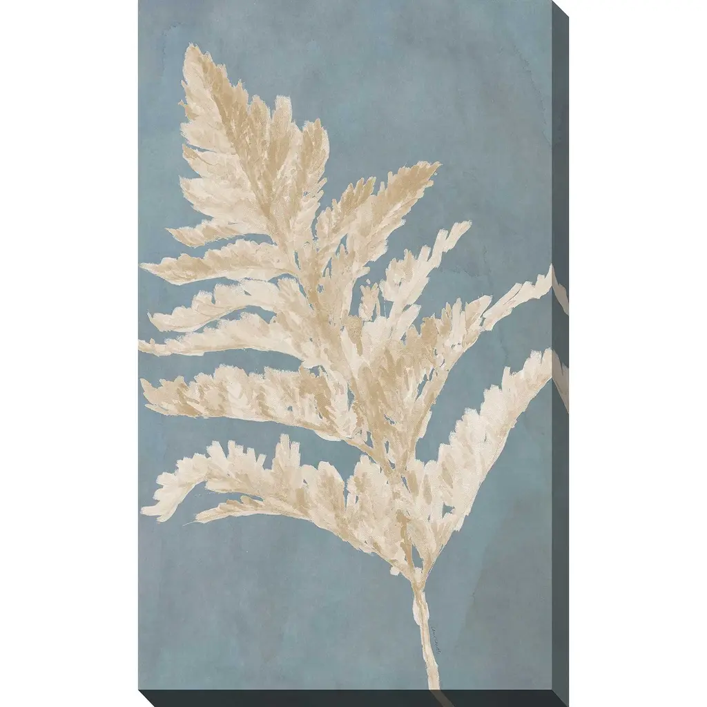 "Tan Leaf On Blue I" Print On Canvas - 18 X 30