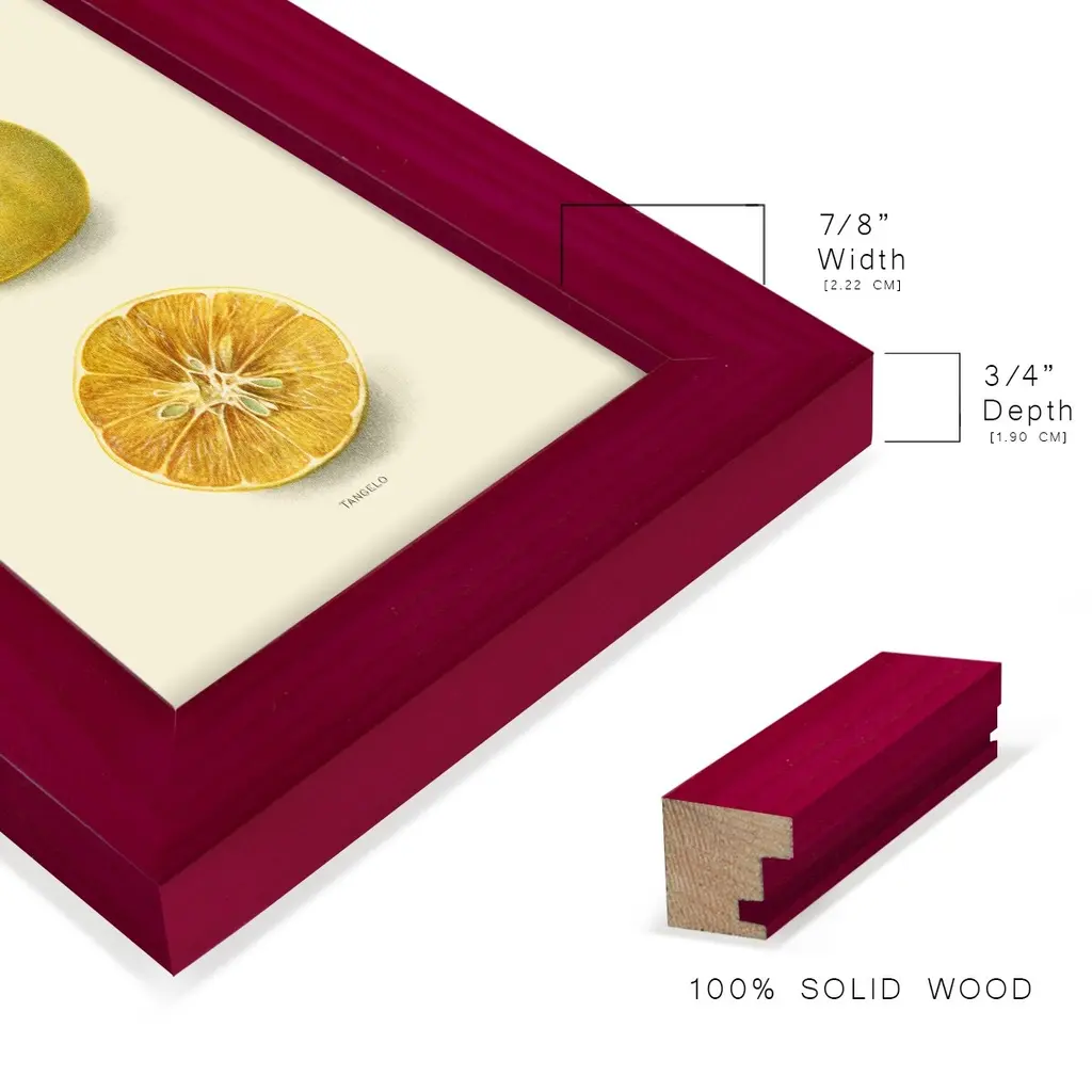 Tangelo -EZ SWITCH Framed Print w/glass-Cherry Red A delightful, framed print. Featuring a solid wood frame with real wood glass. This premium print is giclee quality. In addition, every frame features a removable back and table top stand. This allows you to change your art in the future or to just stand the art on a table for a new look. We are sure you'll enjoy our new series of EZ SWITCH Framed Art. Solid Wood Frame Real Glass Removable / Replaceable Art Built in Tabletop Stand Sizes range from 4x6 up to 12x15 - buy just one or pair them up as sets as you see fit.