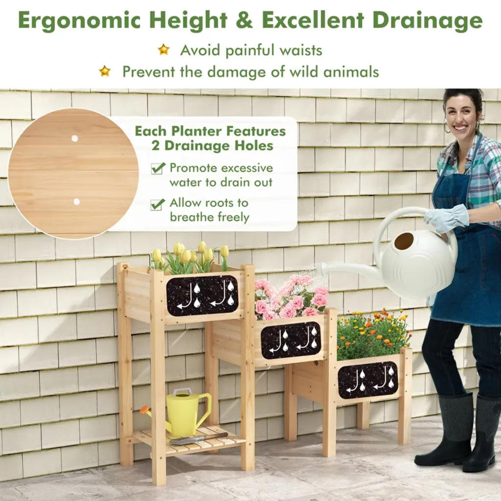 Tangkula 3-tier Wooden Raised Garden Bed Elevated Garden Planter W/ 3 Planter Boxes Open Storage Shelf Drainage Holes