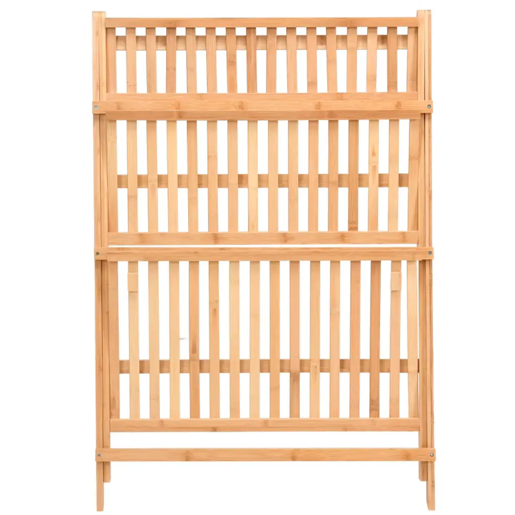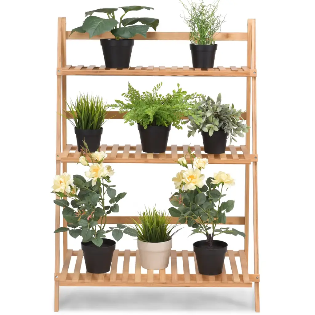 Tangkula Folding Flower Display Bamboo Garden 3Tier Plant Shelf