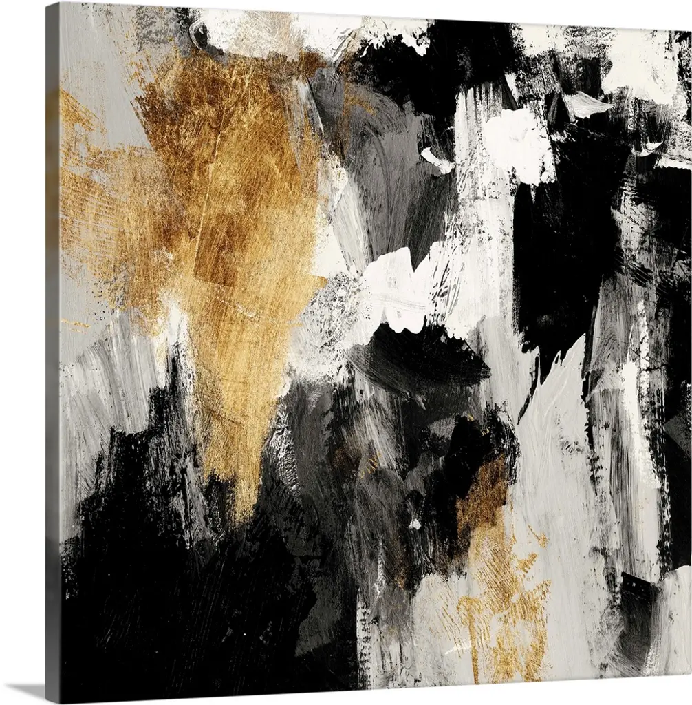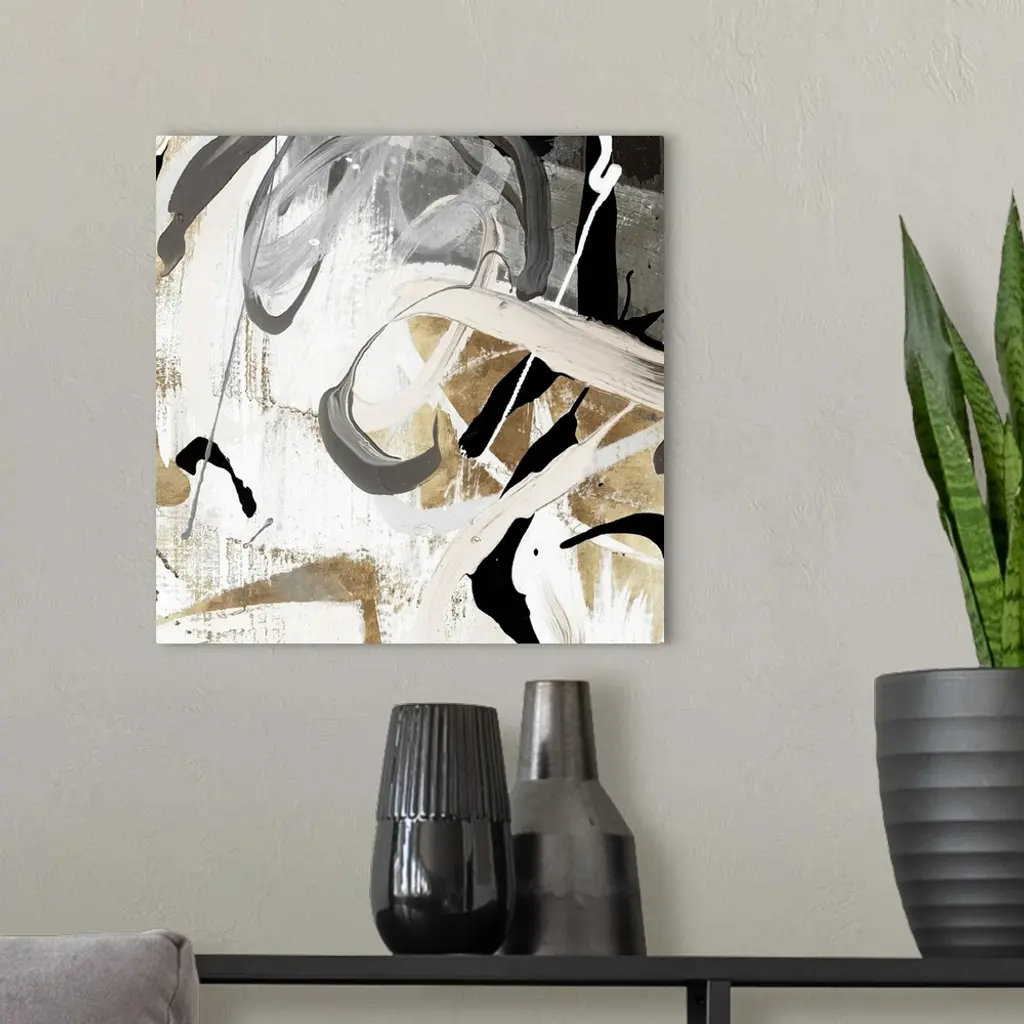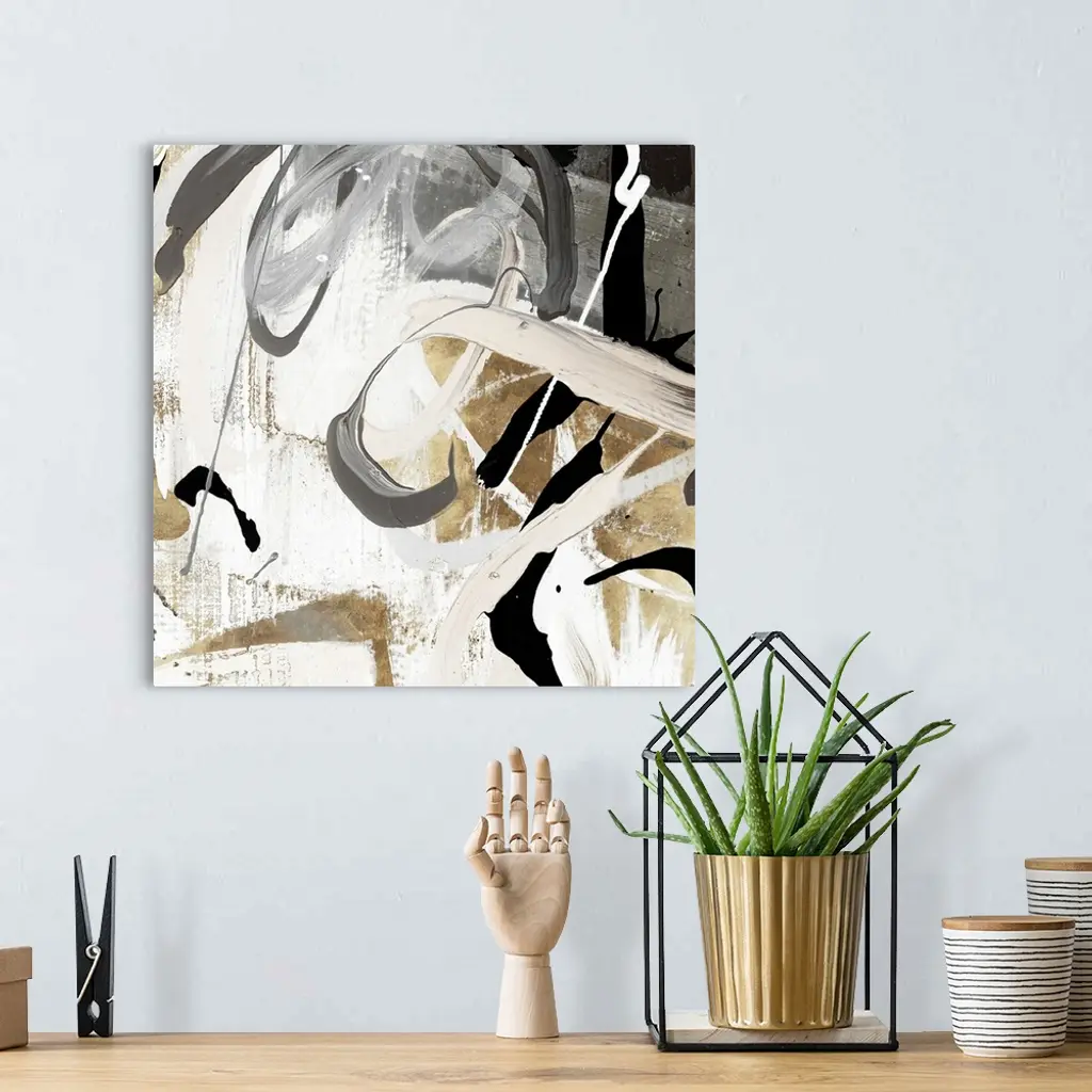 A Square abstract painting featuring shades of brown, black and white.