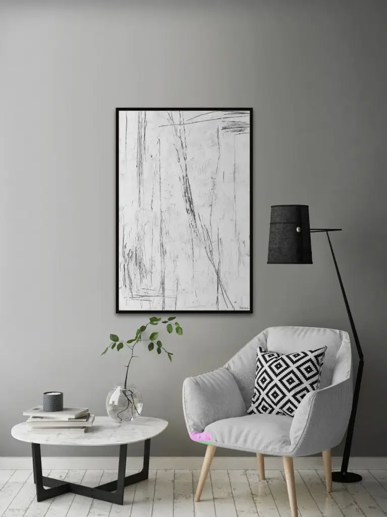 Stunning and minimal, this acrylic painting print features a neutral black and white abstract design that can be interpreted in many ways. Proudly printed in the USA, this piece is printed on canvas before it''s stretched, and framed and mounted in a non-warping floater frame thereafter. With wall-mounting hooks included, this artful accent is ready to hang up as soon as it reaches your front door.Canadian artist, Parvez Taj uses water paints, photographs, software, and UV cured inks to create his wall art. His artwork connects the out-of-reach luxury art world with the modern, fashion-conscious home decorator by delivering high quality artwork that is both affordable and hip.Durable art print on high quality canvas by Parvez TajProfessionally hand stretchedFramed and mounted in non-warping floater frameArrives ready to hangIncludes a certificate of authenticityArtist signature on the front