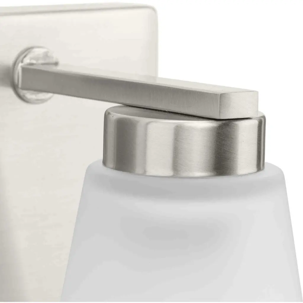 Fill your house with the lively Tanner family of fixtures. Strong lines accent the Brushed Nickel frame in a simple balance of form and function, while a soft etched glass shade complements the design.The versatile fixture can be mounted with the shade facing up or down to suit your preference.