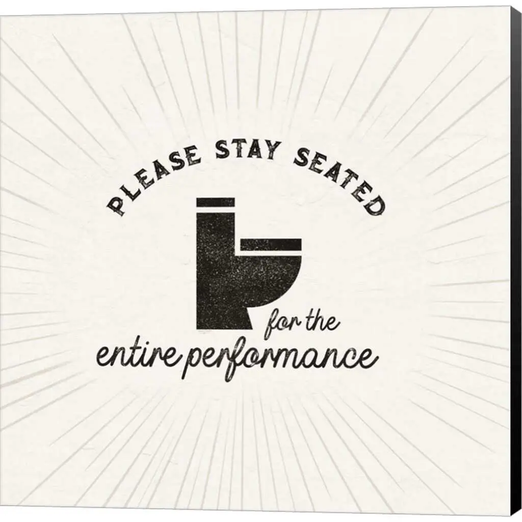 Bath Art VIII-Stay Seated by Tara Reed is a high quality piece of canvas artwork. The finished size of this piece is 12" X 12", and it has a depth 1.5" with black painted sides. There is a UV protective coating over the entire image, and it is ready to hang on your wall with a standard drywall screw (not included). 100% Satisfaction Guaranteed.