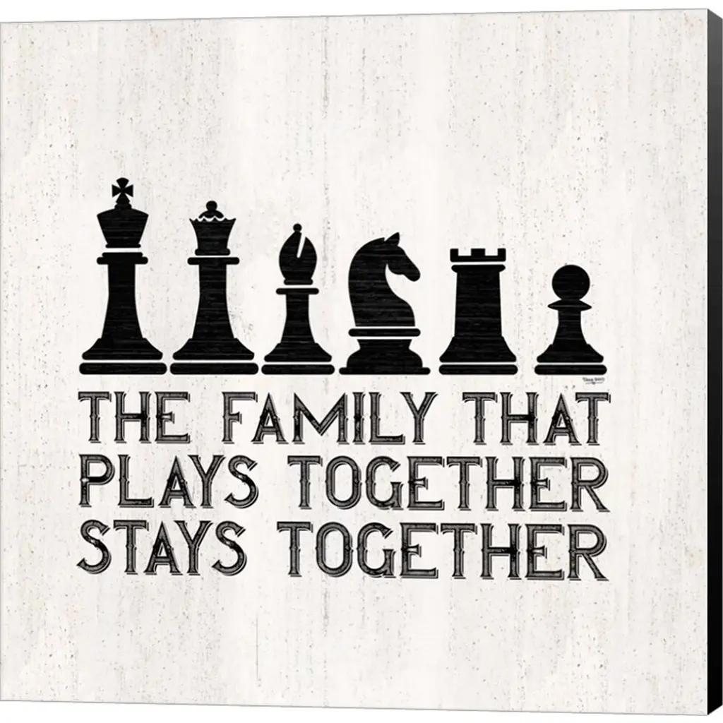 Chess Sentiment II-Family by Tara Reed is a high quality piece of canvas artwork. The finished size of this piece is 12" X 12", and it has a depth 1.5" with black painted sides. There is a UV protective coating over the entire image, and it is ready to hang on your wall with no hardware required. 100% Satisfaction Guaranteed.