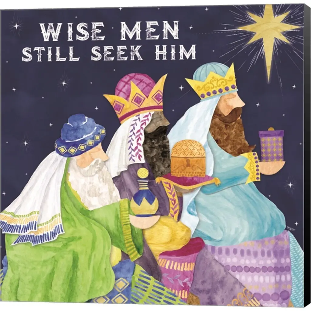 Come Let Us Adore Him I-Wise Men by Tara Reed is a high quality piece of canvas artwork. The finished size of this piece is 12" X 12", and it has a depth 1.5" with black painted sides. There is a UV protective coating over the entire image, and it is ready to hang on your wall with a Standard Drywall Screw (not included. 100% Satisfaction Guaranteed.