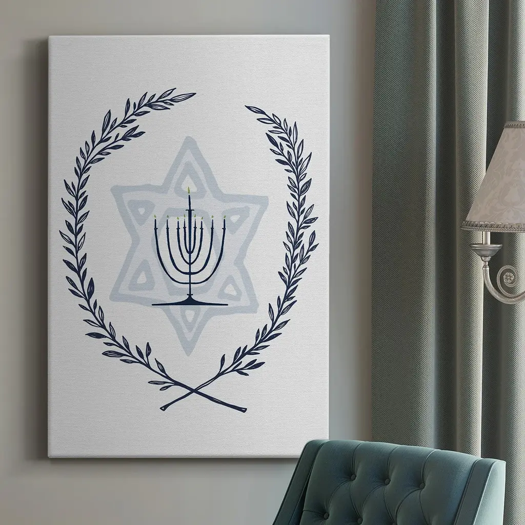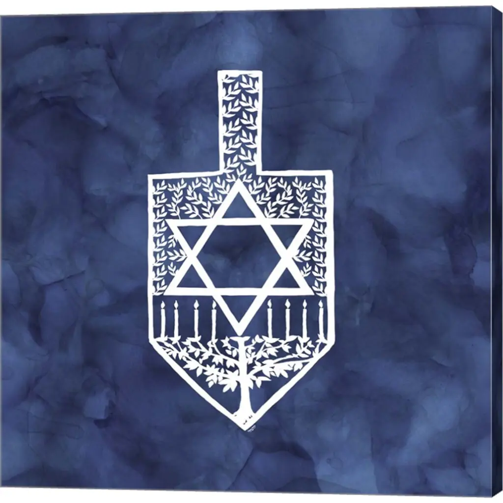 Festival of Lights Blue I-Dreidel by Tara Reed is a high quality piece of canvas artwork. The finished size of this piece is 12" X 12", and it has a depth 1.5". There is a UV protective coating over the entire image, and it is ready to hang on your wall with a Standard Drywall Screw (not included. 100% Satisfaction Guaranteed.