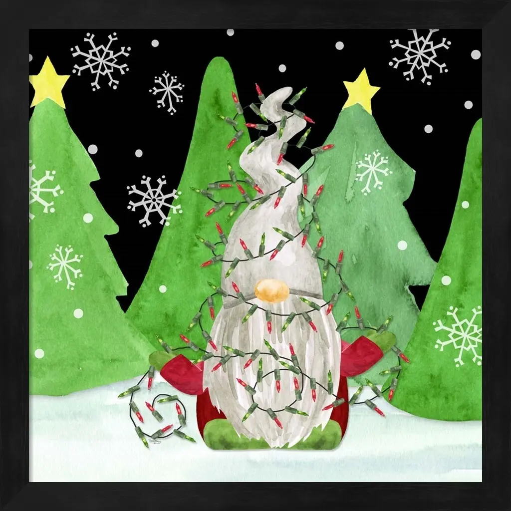 Gnome for Christmas III-Gnome Lights by Tara Reed is a high quality piece of framed artwork. The finished size of this piece is 13.25" X 13.25". It has a Black Deep Box frame and is finished with high quality Glass. 100% Satisfaction Guaranteed.