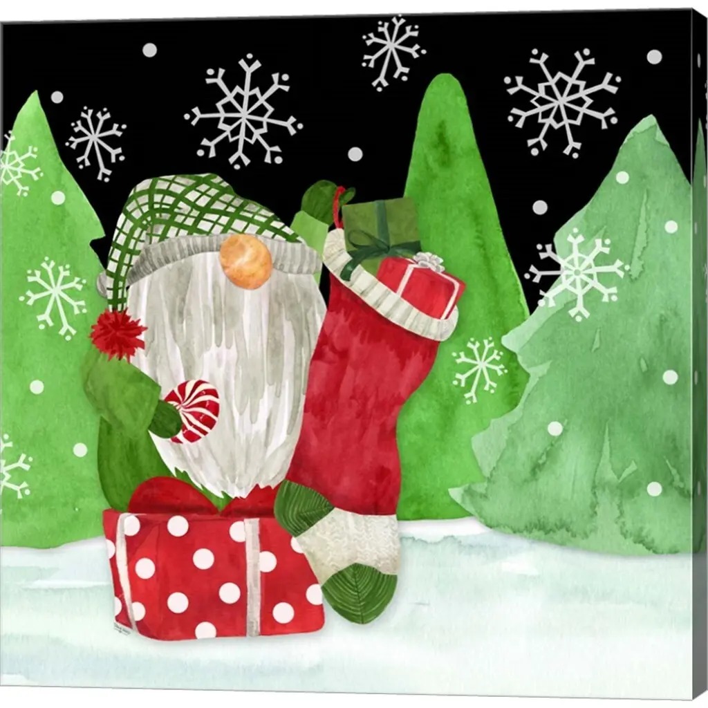Gnome for Christmas IV-Gnome Stocking by Tara Reed is a high quality piece of canvas artwork. The finished size of this piece is 12" X 12", and it has a depth 1.5". There is a UV protective coating over the entire image, and it is ready to hang on your wall with a Standard Drywall Screw (not included. 100% Satisfaction Guaranteed.