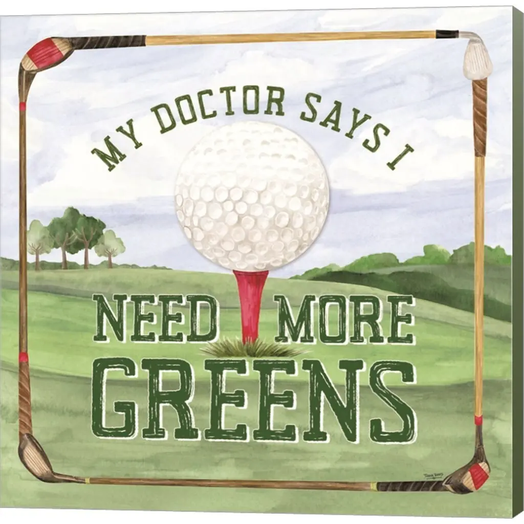 Golf Days I-More Greens by Tara Reed is a high quality piece of canvas artwork. The finished size of this piece is 12" X 12", and it has a depth 1.5" with sage green painted sides. There is a UV protective coating over the entire image, and it is ready to hang on your wall with a standard drywall screw (not included). 100% Satisfaction Guaranteed.
