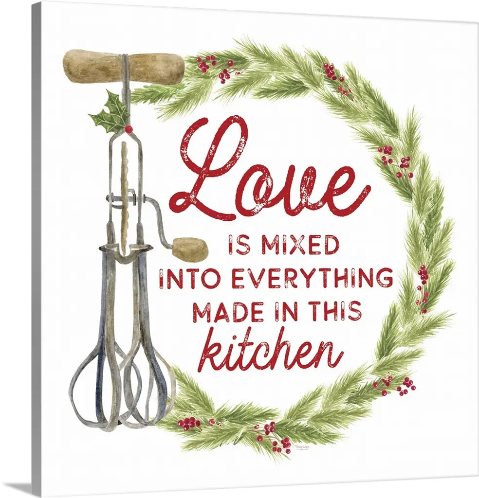 Home Cooked Christmas II-Memories by Tara Reed is a high quality piece of canvas artwork. The finished size of this piece is 12" X 12", and it has a depth 1.5" with sage green painted sides. There is a UV protective coating over the entire image, and it is ready to hang on your wall with a Standard Drywall Screw (not included. 100% Satisfaction Guaranteed.
