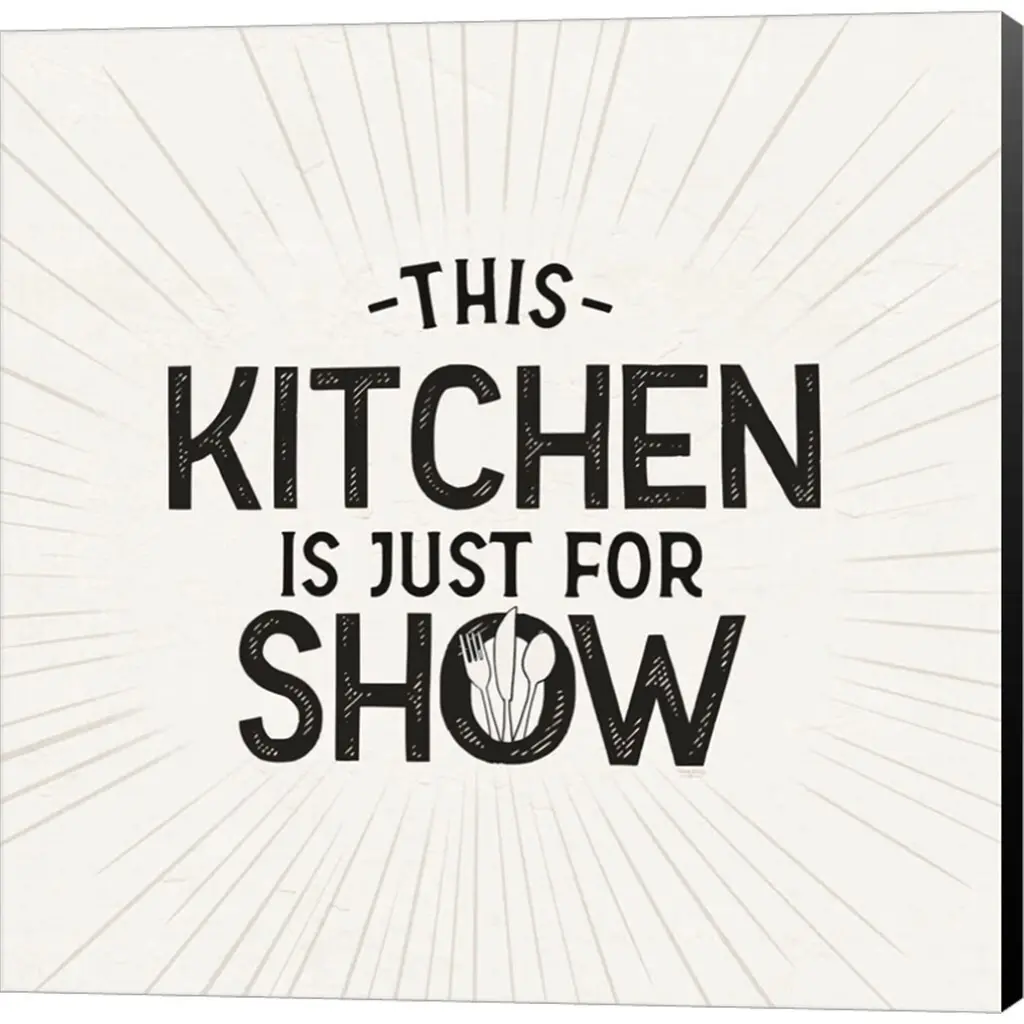Kitchen Art IV-Just for Show by Tara Reed is a high quality piece of canvas artwork. The finished size of this piece is 12" X 12", and it has a depth 1.5" with black painted sides. There is a UV protective coating over the entire image, and it is ready to hang on your wall with a standard drywall screw (not included). 100% Satisfaction Guaranteed.