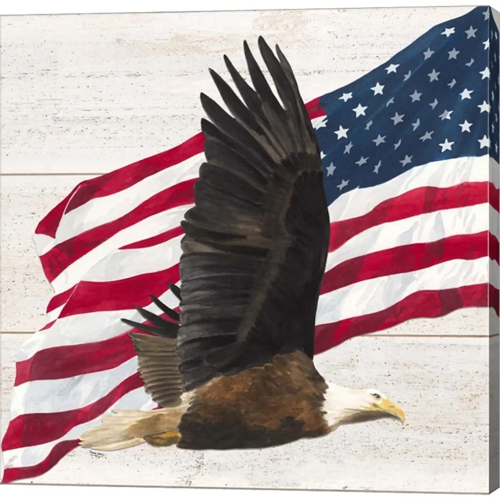 Let Freedom Soar V by Tara Reed is a high quality piece of canvas artwork. The finished size of this piece is 12" X 12", and it has a depth 1.5". There is a UV protective coating over the entire image, and it is ready to hang on your wall with a Standard Drywall Screw (not included. 100% Satisfaction Guaranteed.