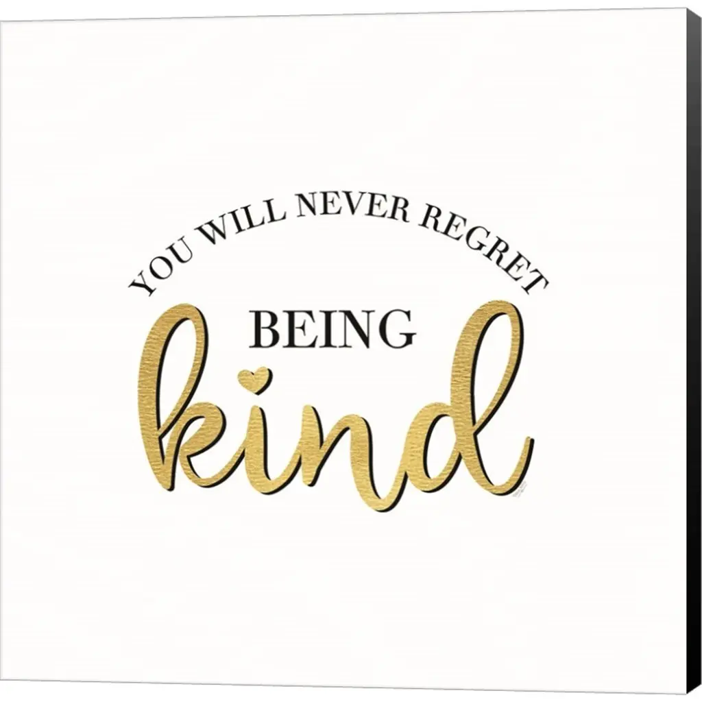 Sentiment Art I-Being Kind by Tara Reed is a high quality piece of canvas artwork. The finished size of this piece is 12" X 12", and it has a depth 1.5" with black painted sides. There is a UV protective coating over the entire image, and it is ready to hang on your wall with a standard drywall screw (not included). 100% Satisfaction Guaranteed.