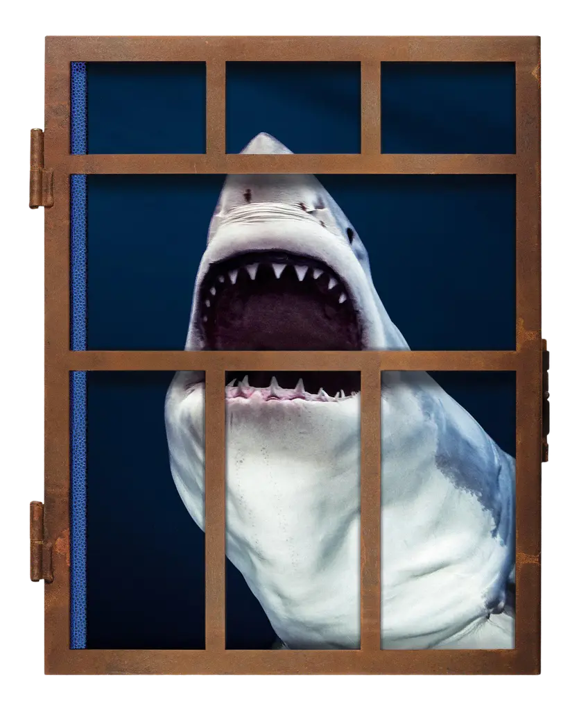 A catalogue of adrenaline and awe, this Collector’s Edition of Michael Muller’s epic shark photography comes signed by the photographer and with its own metal shark cage. A tribute to the beauty, might, and fragility of the ocean predator, the volume includes the first known image of a great white breaching at night and an essay from Philippe Cousteau Jr.Collector’s Edition (201–1,200), each numbered and signed by Michael Muller, with its own metal shark cage