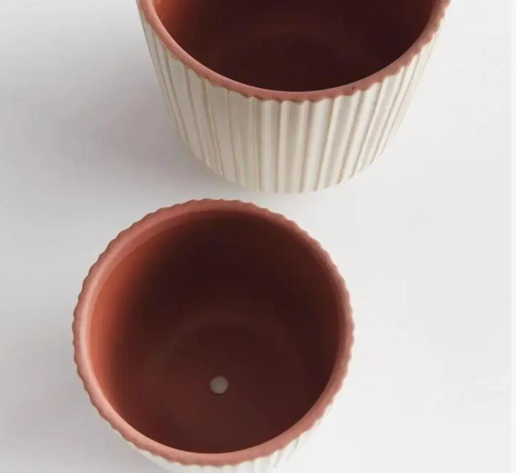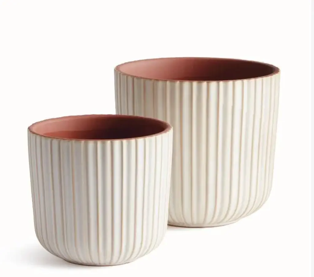 The Cream Tasha Pots - Set of 2 6.5 x 6.5 x 6.25 5.25 x 5.25 x 5 Transform your home into a sanctuary of style and serenity with these chic ceramic pots. Crafted with precision and passion, these pots feature a timeless ribbed design, adding a touch of sophistication to any room or outdoor area. - White - Items have drain holes Antique, vintage, designer floor samples & new products from one of the hottest Retail and To The Trade Home Furnishings showrooms in the country. Located in Chicago's chic Roscoe Village, Kenneth Ludwig Chicago carries the best offerings in furniture, accessories, artwork & textiles. Offerings are always fresh & always inspiring! Quite often ( due to a discontinued style, fabric or frame ) they must sell off their showroom floor samples. You receive first quality pieces at amazing prices. Check back weekly for new inventory added.