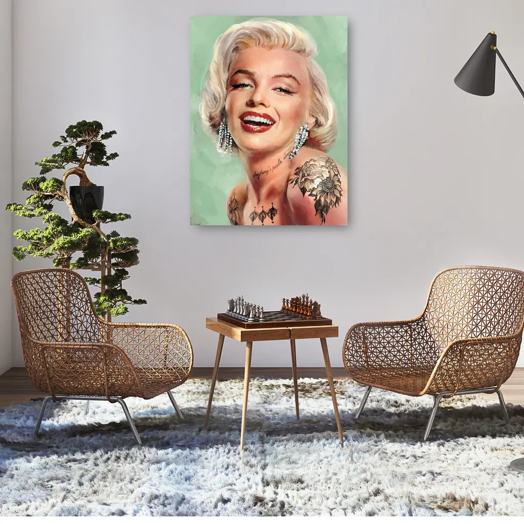 Tattooed Marilyn By Studio Arts is produced with printing that covers the entirety of the canvas for a sleek and stylish museum-quality look. Our framed prints are made by expert craftsmen who strive to make each canvas the masterpiece that your home deserves. Each of our framed canvas art prints is hand-crafted and made-to-order to give it a high quality and professional appearance. To ensure the clearest, most accurate depiction of the artists' original vision, we print each work of art on bright white polyester canvas, ensuring the most vivid display and precise details. Please note: colors may differ slightly due to variation in monitors. READY TO HANG - Our canvas prints come with preinstalled D-rings attached to the back of the product to make hanging and displaying your new masterpiece a breeze.