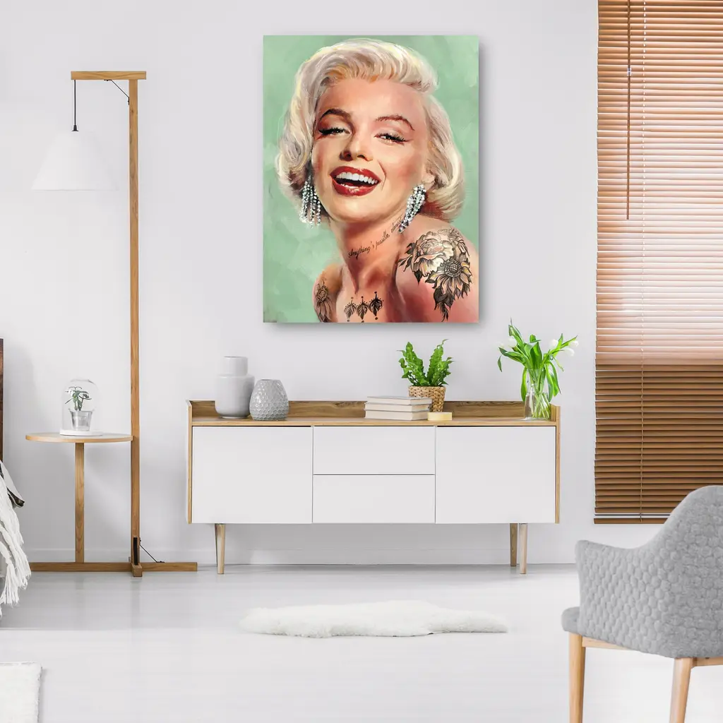 Tattooed Marilyn By Studio Arts is produced with printing that covers the entirety of the canvas for a sleek and stylish museum-quality look. Our framed prints are made by expert craftsmen who strive to make each canvas the masterpiece that your home deserves. Each of our framed canvas art prints is hand-crafted and made-to-order to give it a high quality and professional appearance. To ensure the clearest, most accurate depiction of the artists' original vision, we print each work of art on bright white polyester canvas, ensuring the most vivid display and precise details. Please note: colors may differ slightly due to variation in monitors. READY TO HANG - Our canvas prints come with preinstalled D-rings attached to the back of the product to make hanging and displaying your new masterpiece a breeze.