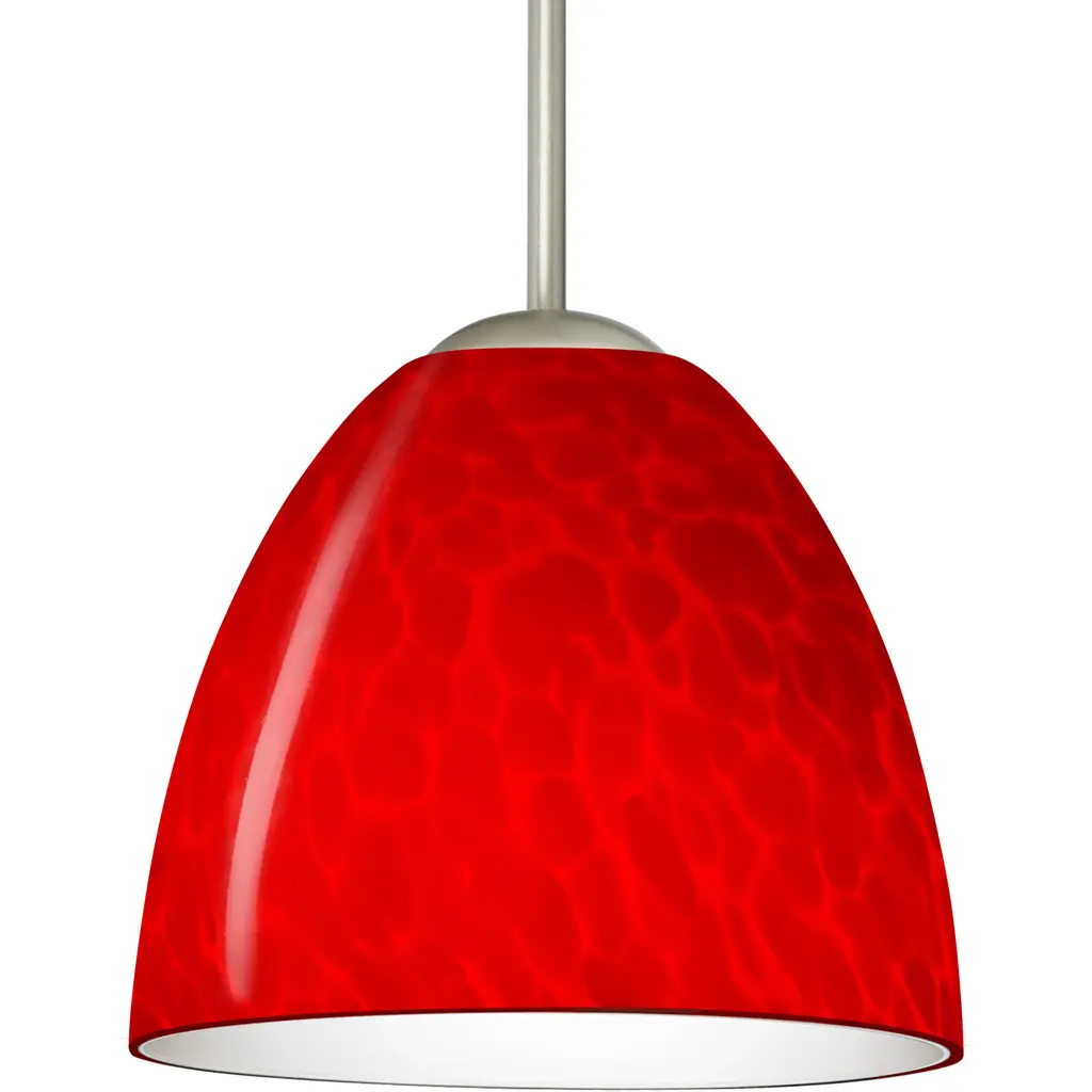 The Tay Tay is a compact handcrafted glass, softly radiused to fit gracefully into contemporary spaces. Our Red Cloud glass is full of floating, splashes of red tones over cased red that resembles a watercolor painting when illuminated. This combination of color is crisp and timeless. This décor is created by rolling molten glass in small bits of red hues called frit. The result is a multi-layered blown glass, where frit color is nestled between an opal inner layer and a clear glossy outer layer. The handcrafted touch of a skilled artisan, utilizing century-old techniques passed down from generation to generation, creates variations in color and design that are to be appreciated. The 12V cord pendant fixture is equipped with a 10' braided coaxial cord with teflon jacket and a low profile flat monopoint canopy. These stylish and functional luminaries are offered in a beautiful brushed Bronze finish.