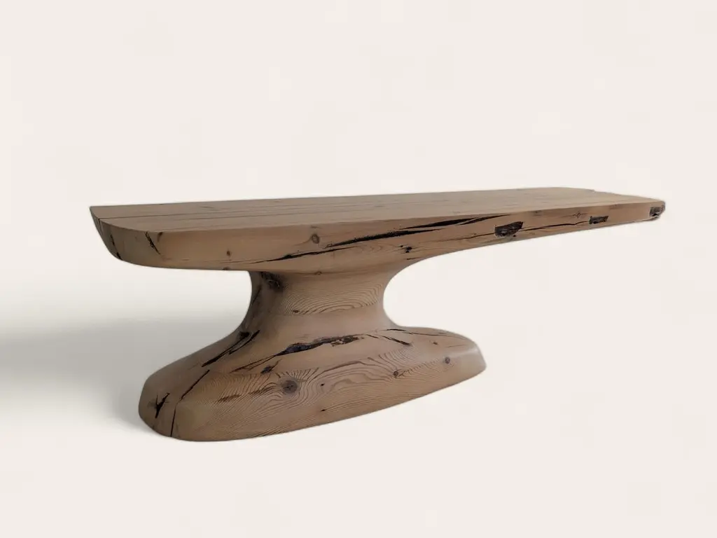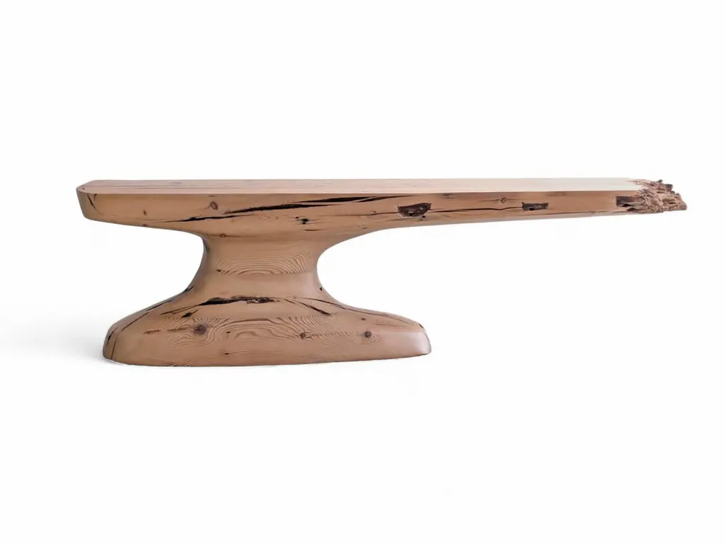 Tea 1750 Collection Bench by AMBER x IÑIGO CALLEJADimensions: W 175 x D 50 x H 50 cm. Materials: Old tea Beams, natural finish.Iñigo Calleja is an engineer, designer and soulful maker born in Spain. He landed his first graduate job at European engineering leader BMW in Munich and developed a successful career in different companies that took his places all around the world. He found his inner entrepreneur living in Sydney and self developed his woodworking skills by chance and need. Once he realized he could build almost anything that he sketched he knew were about to get really exciting. In 2017 he decided to lay roots in coastal Cádiz, a city founded in the year 1000BC that hosts a breathtaking history and constructions that have seen human civilizations grow. Iñigo feels an unstoppable attraction for rare timbers he finds in many derelict buildings that were built centuries ago that are being demolished or renovated and becomes attracted to the stories those fine timbers treasure within.“The century old beams that we salvage from historic buildings in the tri-millenary city of Cádiz have always been around since our beginnings and are essentially our trademark.We were lucky to recover a batch of roof rafters from the old British Embassy in Calle Sagasta nr.1 whose construction dates back to 1750! A time when the Port of Cádiz was the main harbor of mainland Spain, enjoying the virtual monopoly of trade with the Americas.The common purpose of the designs in this collection is to achieve a high end looking sculptural and beautiful piece whilst exposing cracks, wrinkles and other superficial imperfections that these structural beams have garnered over their colossal career. By doing so we honor the lives of all people and characters that have dwelled this magnificent building over its almost 300 years of existence.”