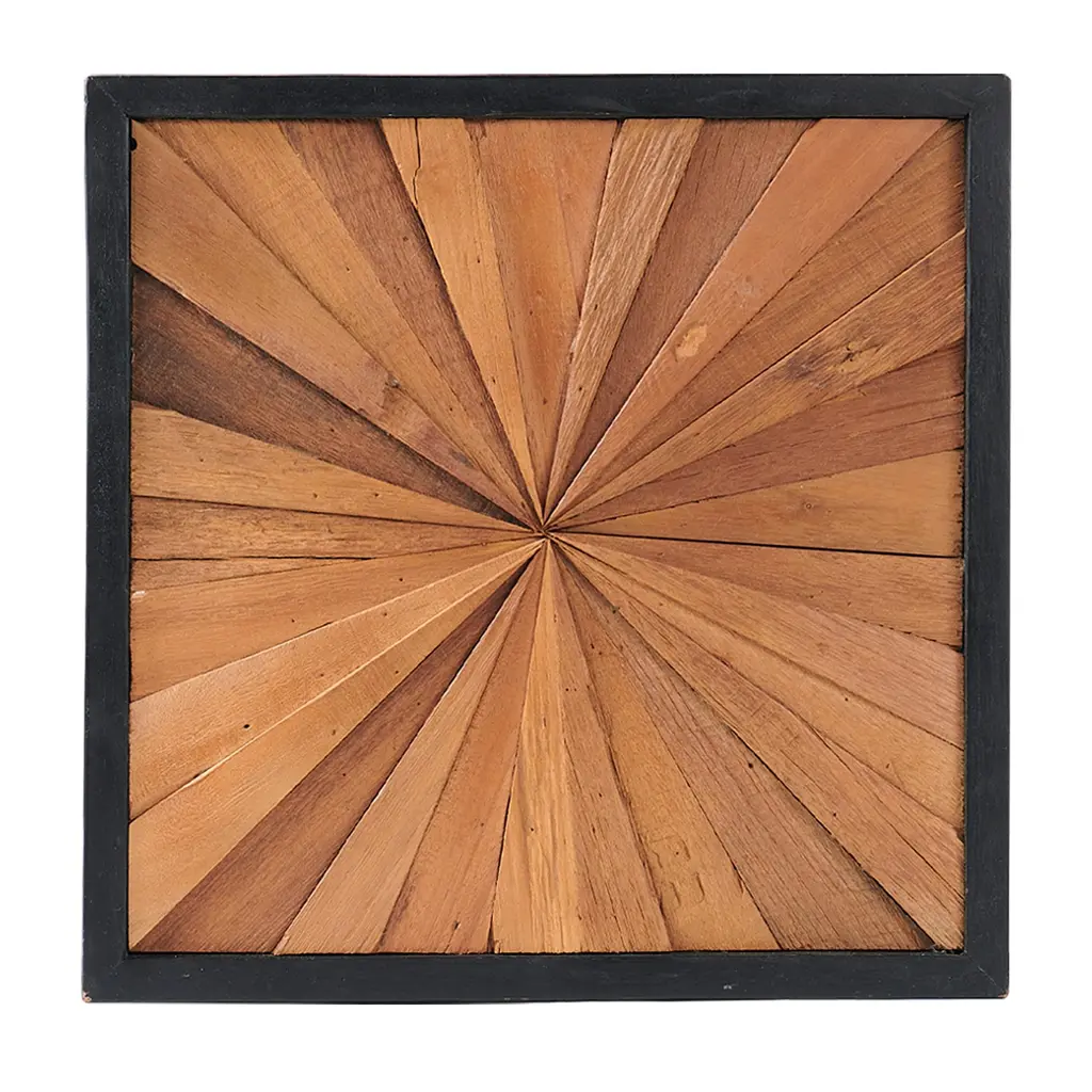 Teak Wood Square Wall Decor Sunburst Pattern Hanging Decoration - 17" X 17"x 1.6"