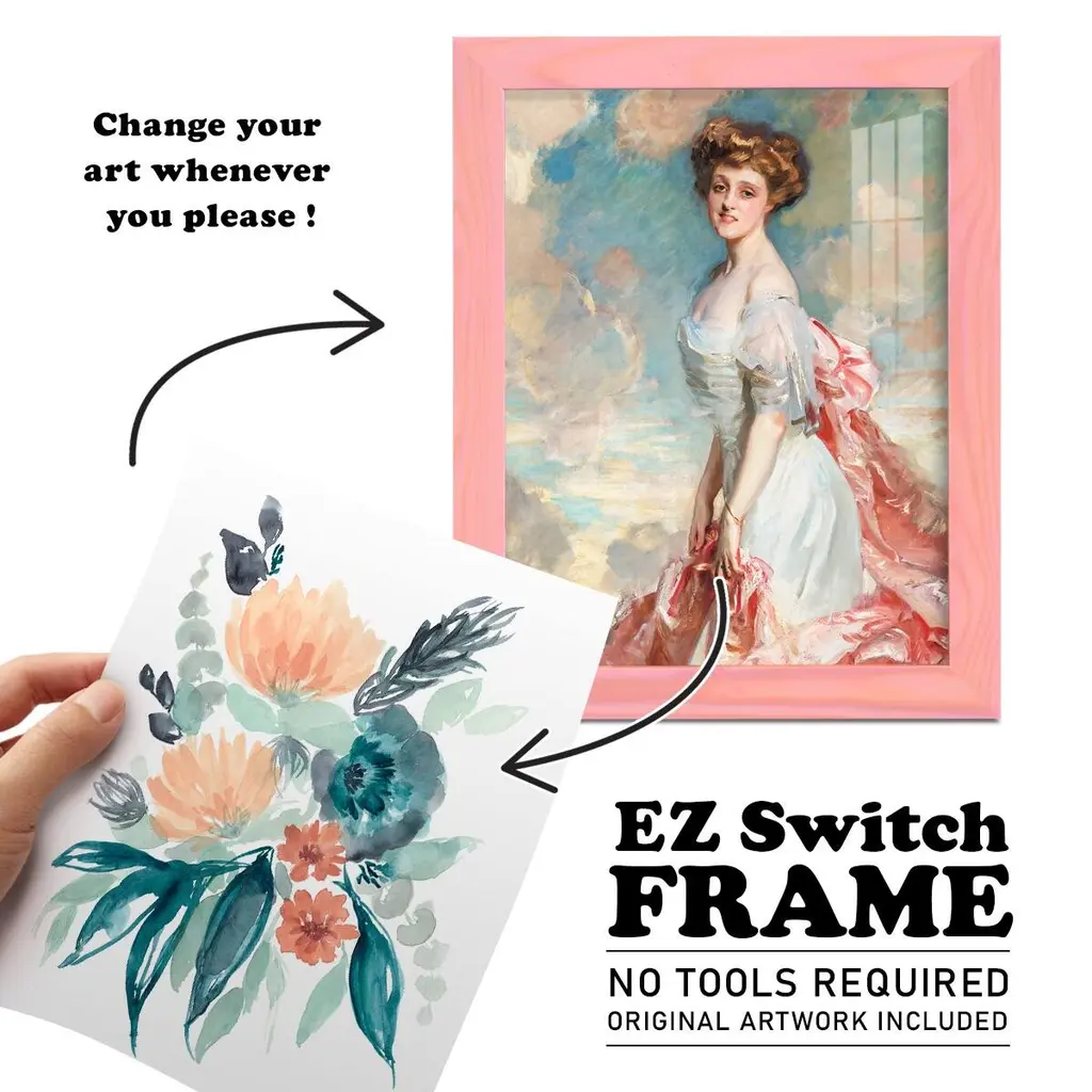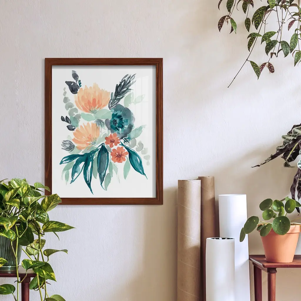 Teal & Peach Bouquet I -EZ SWITCH Framed Print w/glass-Cherry Red A delightful, framed print. Featuring a solid wood frame with real wood glass. This premium print is giclee quality. In addition, every frame features a removable back and table top stand. This allows you to change your art in the future or to just stand the art on a table for a new look. We are sure you'll enjoy our new series of EZ SWITCH Framed Art. Solid Wood Frame Real Glass Removable / Replaceable Art Built in Tabletop Stand Sizes range from 4x6 up to 12x15 - buy just one or pair them up as sets as you see fit.