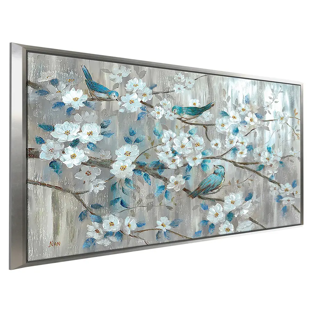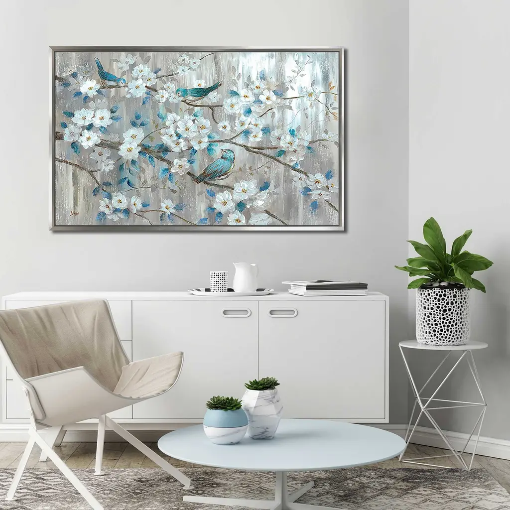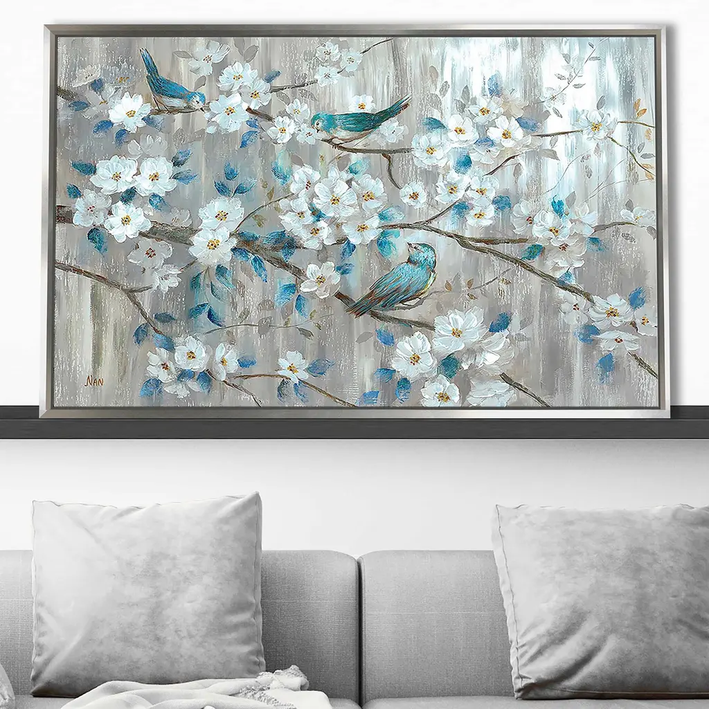 "Teal Birds" Print On Floating Canvas - 21.5 X 33.5