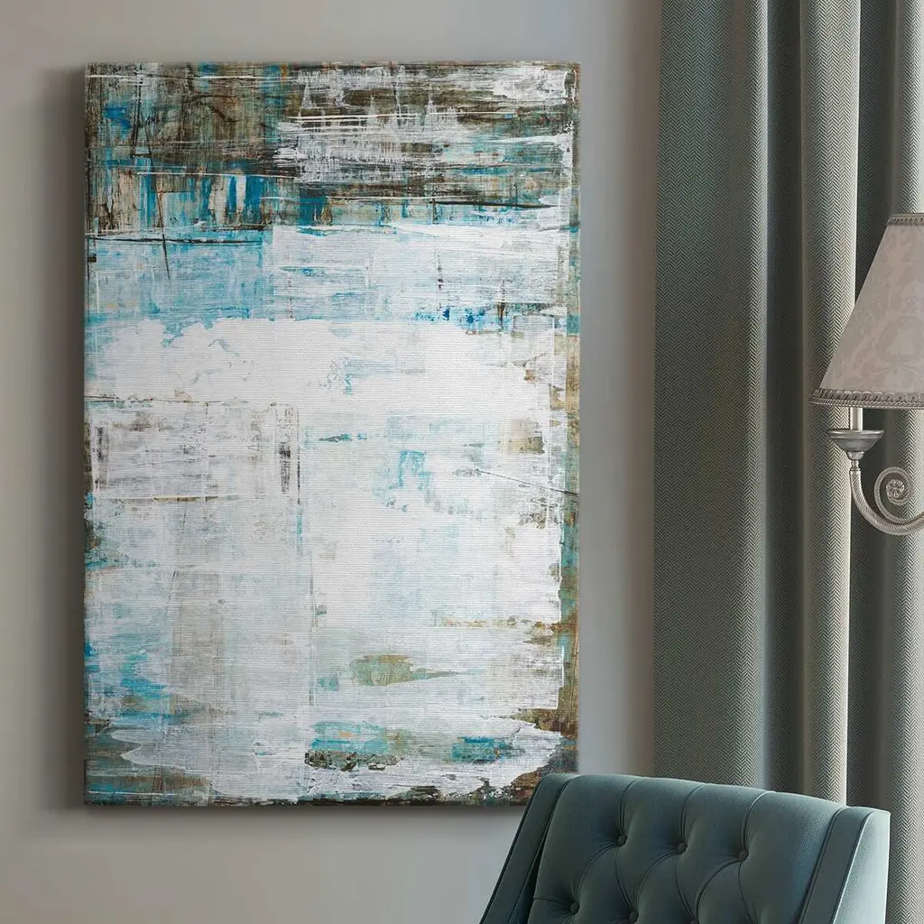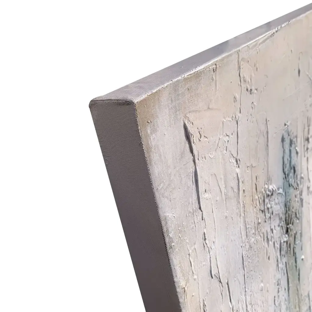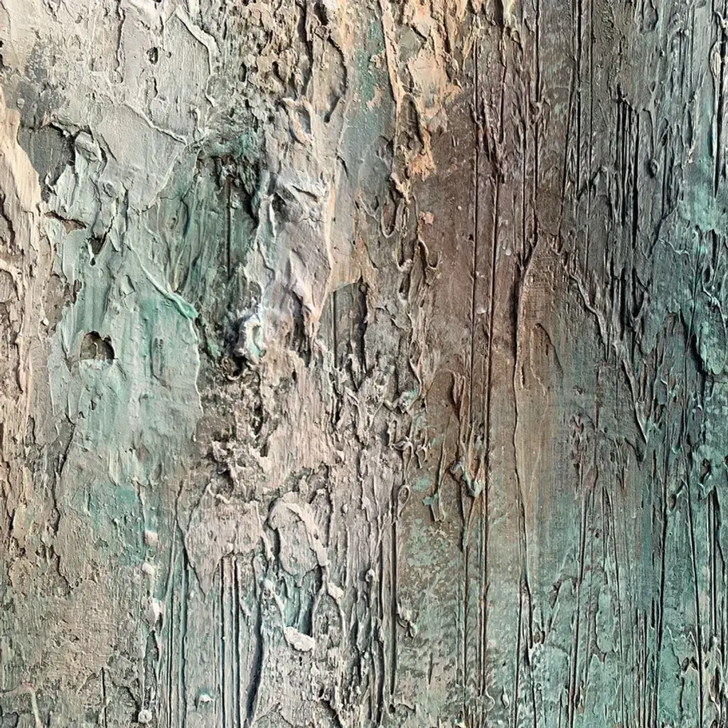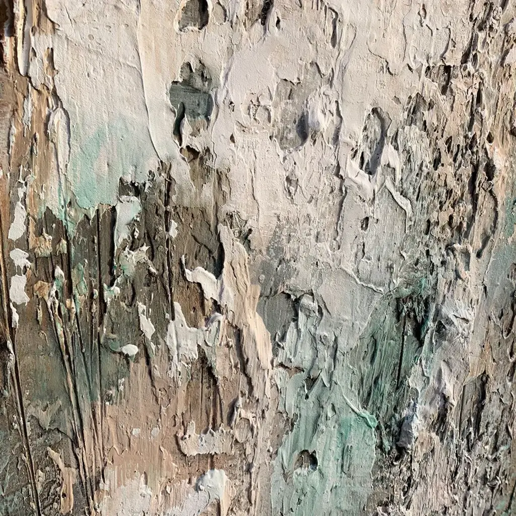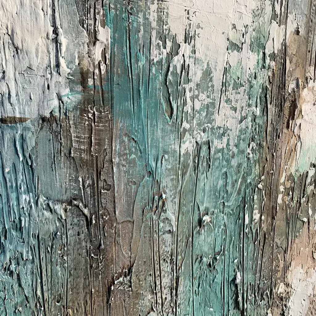 Teal is a large-scale abstract painting hand-painted on canvas. Textural shades of teal paint interact with each other on a white background. With a wooden inner frame and painted borders, the painting is ready to hang.The AGAVE Quadri collection represents the excellence of contemporary art applied to the world of interior design. Each piece, hand-painted with artisanal techniques by the finest artists in collaboration with the Italian company AGAVE, combines abstract, natural, and figurative elements to create unique and refined works. These paintings transform spaces into environments of great elegance and character, perfect for interior design projects that require a distinctive and artistic touch.