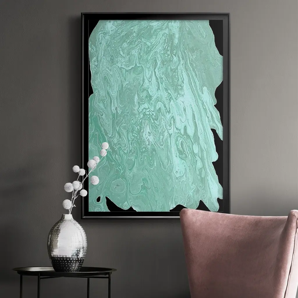 Teal Cascade II Premium Framed Print - Ready to Hang A Premium Framed Print created to last. Framed in distressed wood and available in an array of sizes and colors Featuring a beveled a solid wood stretcher bar, each piece comes ready to hand 4 SIZES AVAILABLE 30.5''X42.5'' - Overall Size 26.5'X36.5'' - Overall Size 22.5''x30.5'' - Overall Size 18.5''x24.5'' - Overall Size Each piece is made to order. Each piece comes with hanging hardware. Made in the USA Ready to Hang