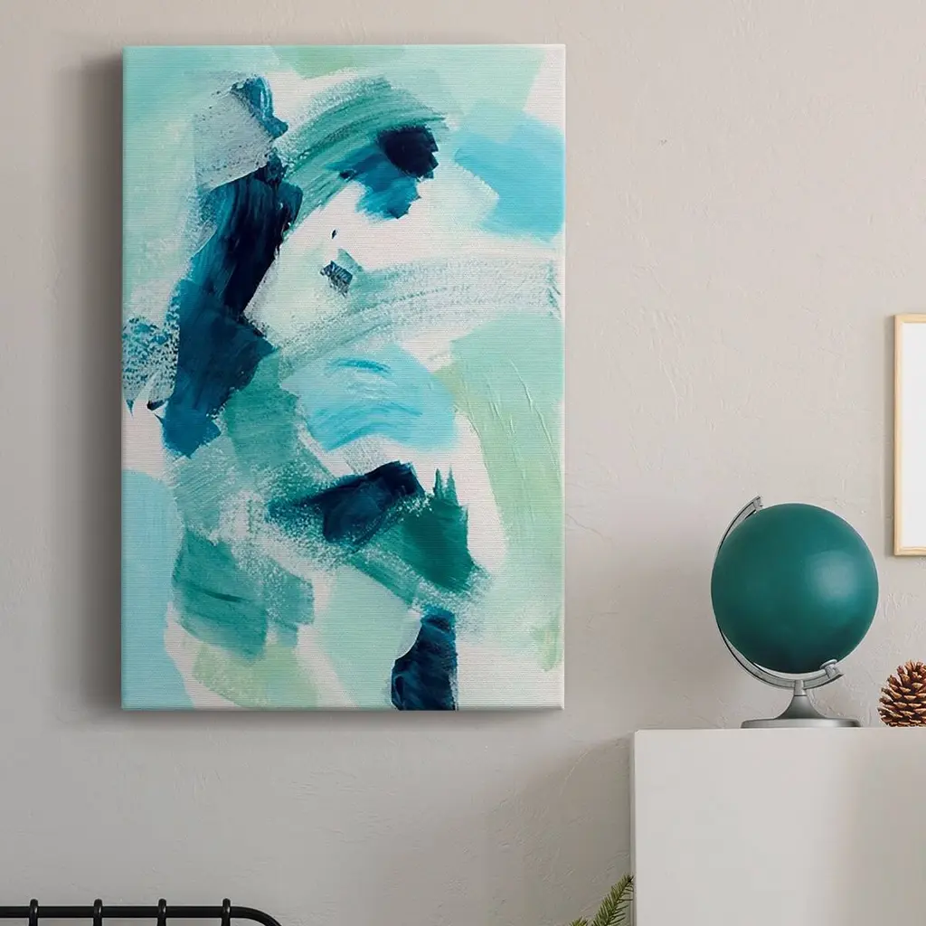 Teal Composition I Premium Gallery Wrapped Canvas - Ready to Hang A premium hand stretched gallery wrapped canvas print created to last. Featuring a beveled a solid wood stretcher bar, each piece comes ready to hand 6 SIZES AVAILABLE 8''X12'' - Overall Size 12''X18'' - Overall Size 18''X27'' - Overall Size 24''x36'' - Overall Size 32''x48'' - Overall Size 40''x60'' - Overall Size Each piece is made to order. Built to Last Each piece comes ready to hang Solid wood stretcher Fade and Water resistant Made domestically