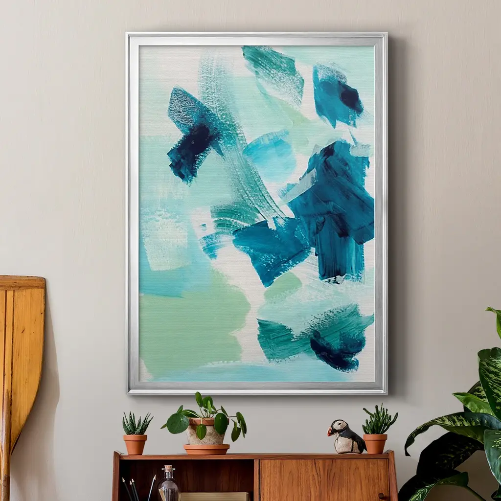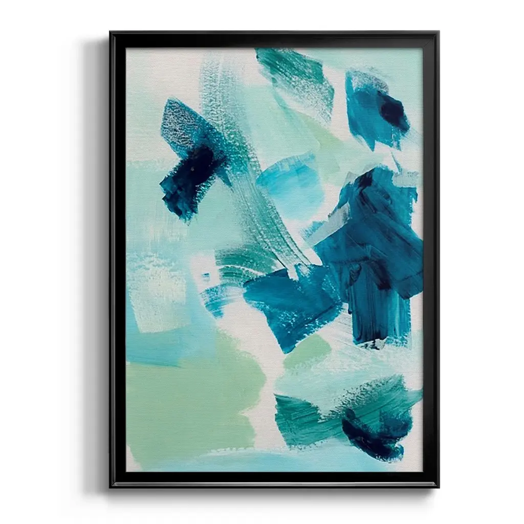 Teal Composition II Premium Framed Print - Ready to Hang A Premium Framed Print created to last. Framed in distressed wood and available in an array of sizes and colors Featuring a beveled a solid wood stretcher bar, each piece comes ready to hand 4 SIZES AVAILABLE 30.5''X42.5'' - Overall Size 26.5'X36.5'' - Overall Size 22.5''x30.5'' - Overall Size 18.5''x24.5'' - Overall Size Each piece is made to order. Each piece comes with hanging hardware. Made in the USA Ready to Hang