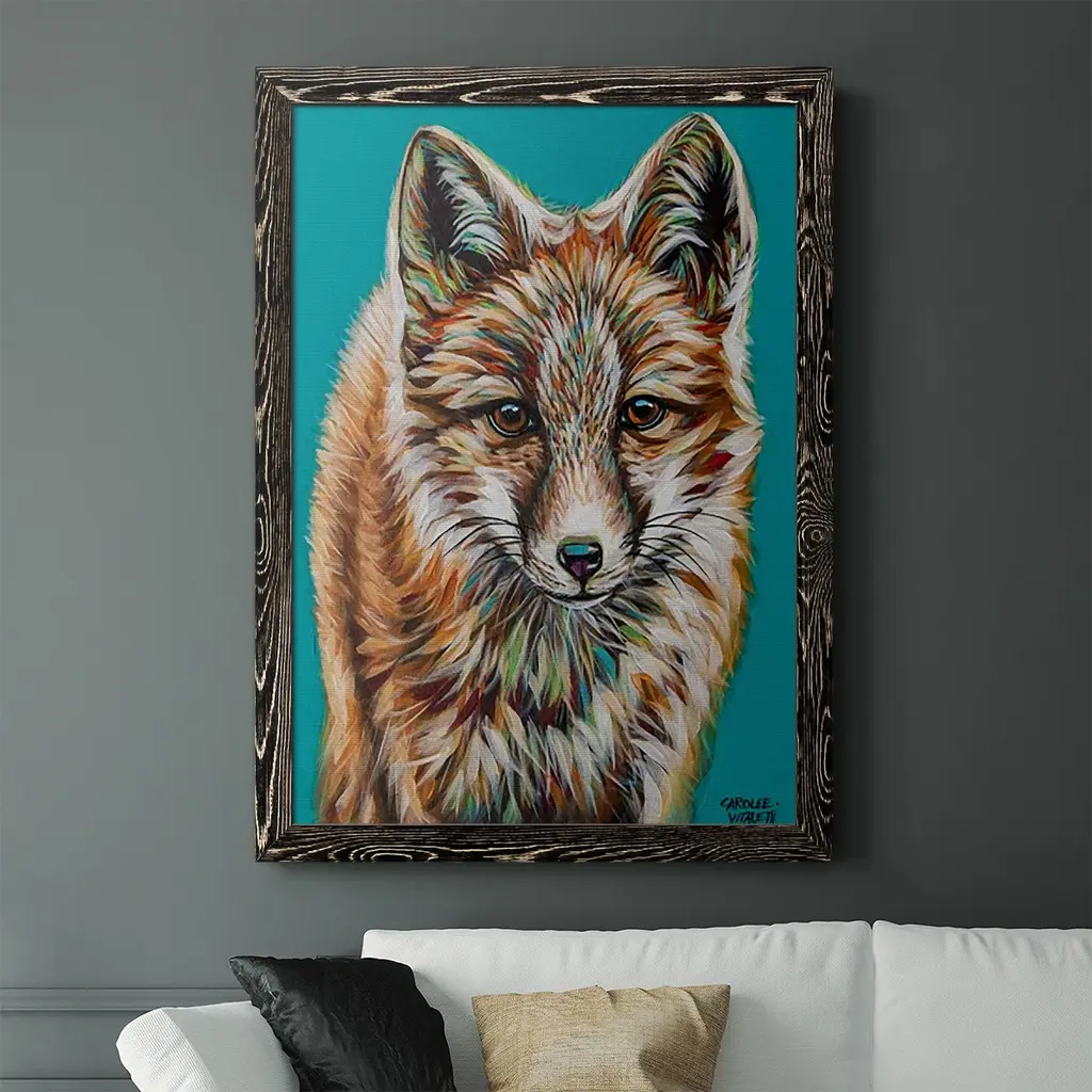 Teal Fox-Premium Framed Canvas - Ready To Hang - 27.5x37.5 - Black