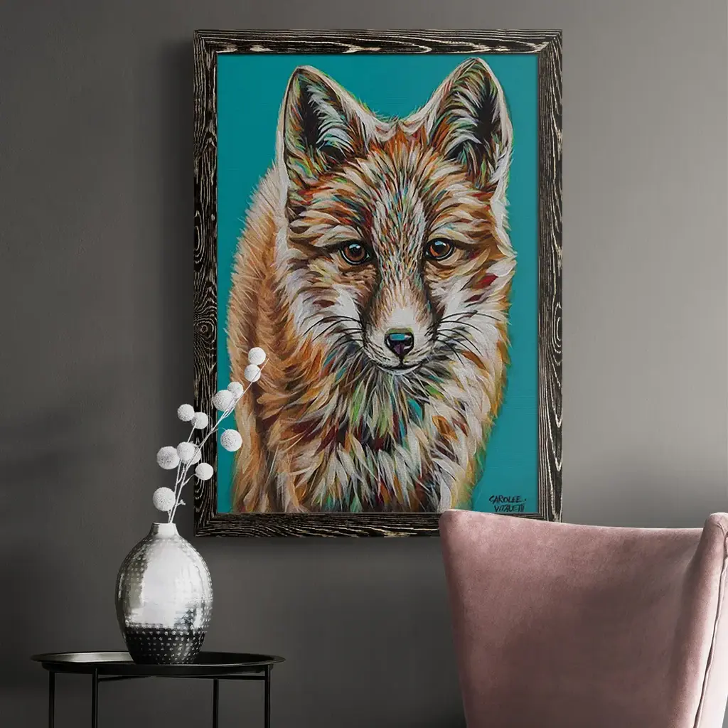 Teal Fox-Premium Framed Canvas - Ready To Hang - 27.5x37.5 - White