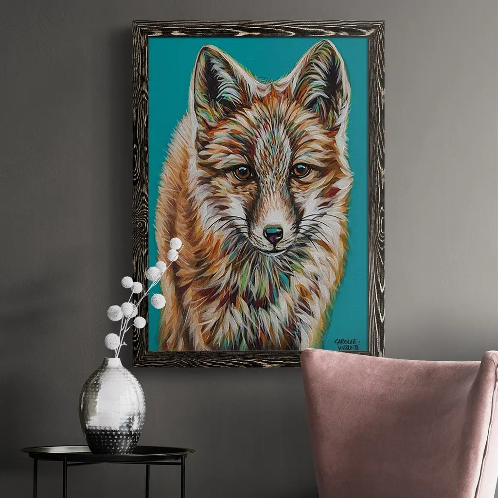 Teal Fox-Premium Framed Canvas - Ready To Hang - 31.5x43.5 - Black
