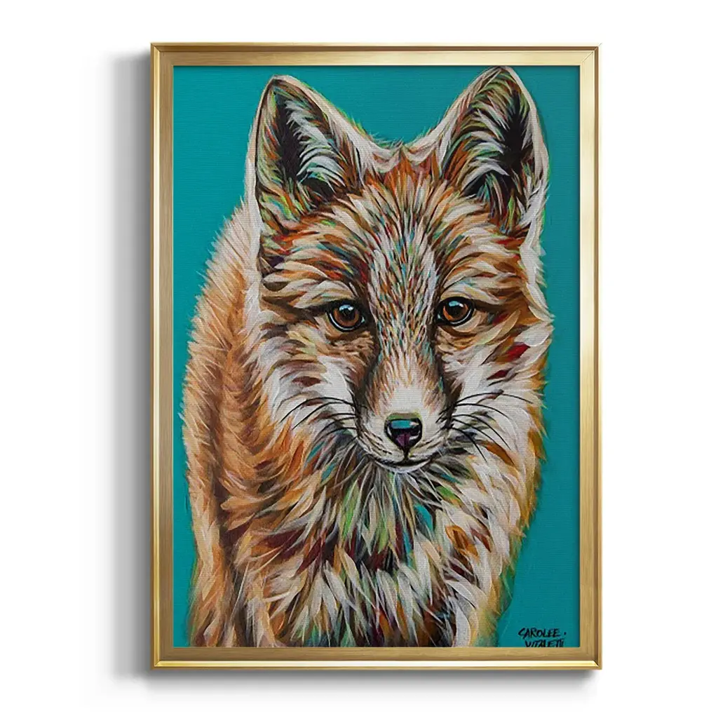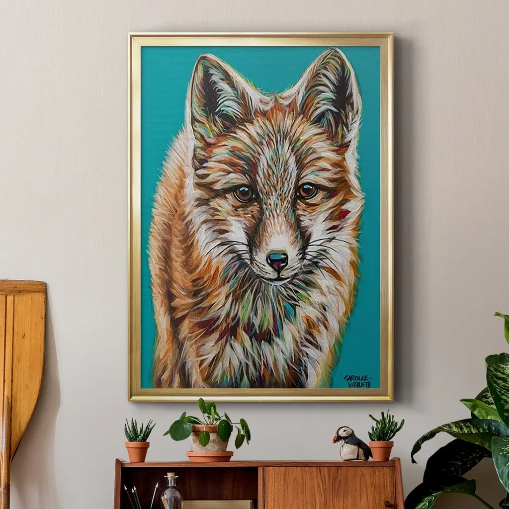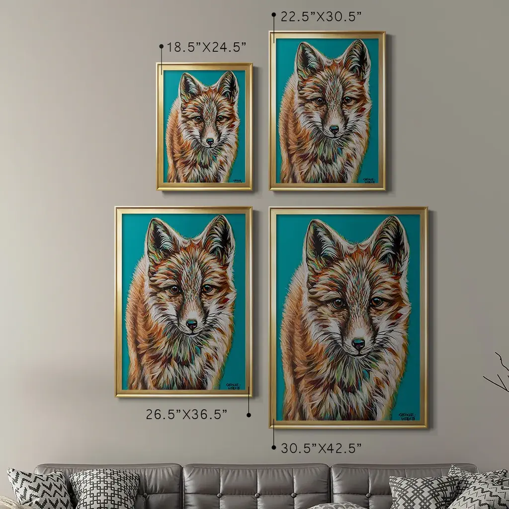 Teal Fox Premium Framed Print - Ready to Hang A Premium Framed Print created to last. Framed in distressed wood and available in an array of sizes and colors Featuring a beveled a solid wood stretcher bar, each piece comes ready to hand 4 SIZES AVAILABLE 30.5''X42.5'' - Overall Size 26.5'X36.5'' - Overall Size 22.5''x30.5'' - Overall Size 18.5''x24.5'' - Overall Size Each piece is made to order. Each piece comes with hanging hardware. Made in the USA Ready to Hang
